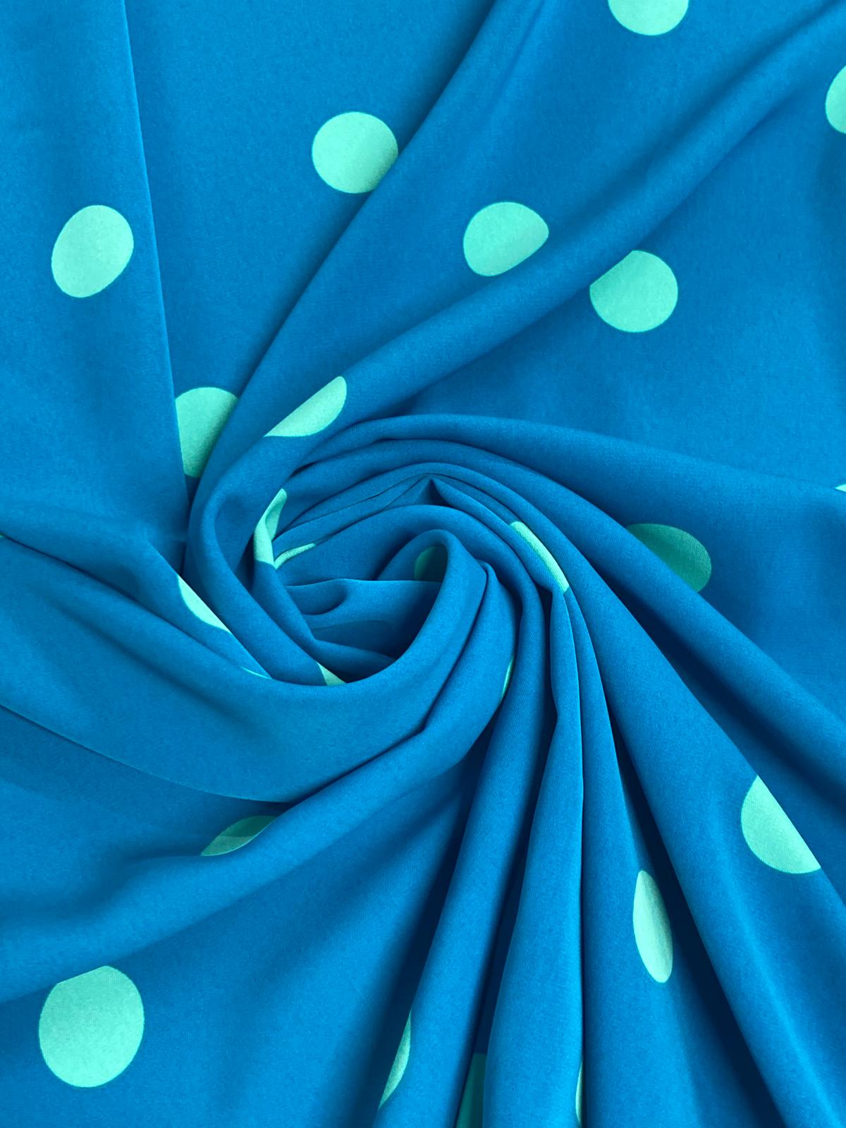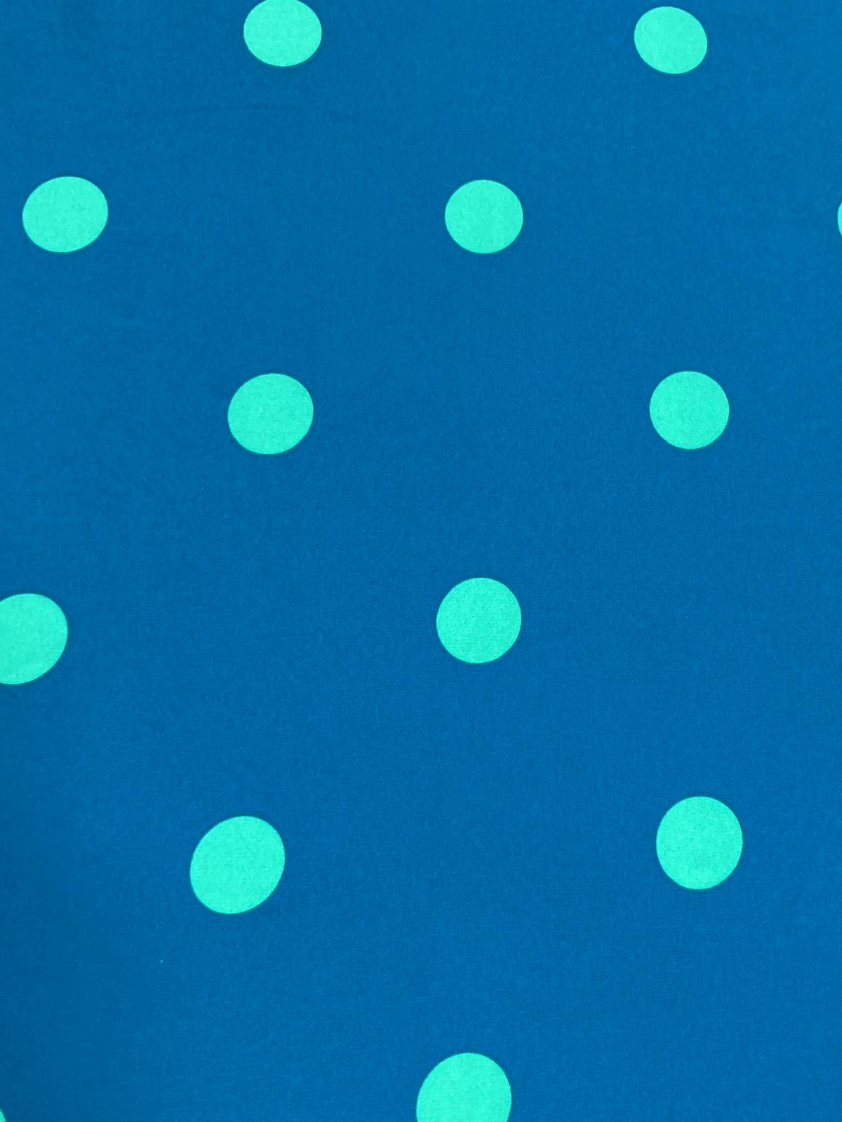 - El color del fondo es azul petróleo y el lunar es de color verde agua oscuro de 2,50 cm de diámetro.