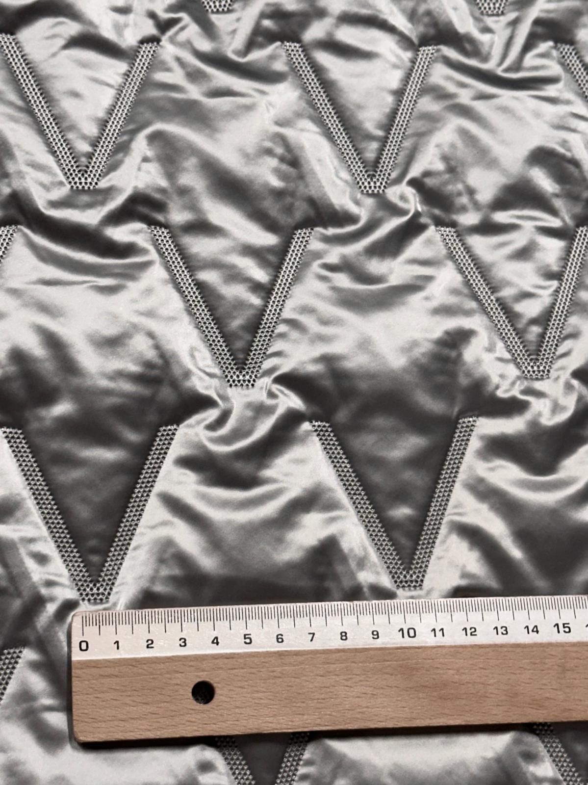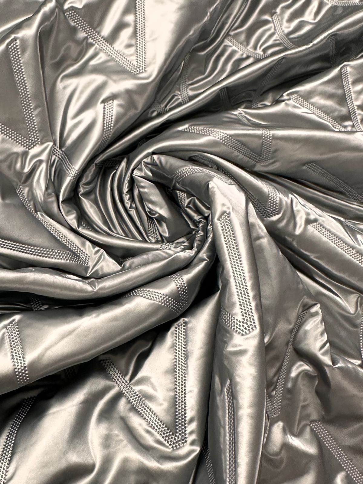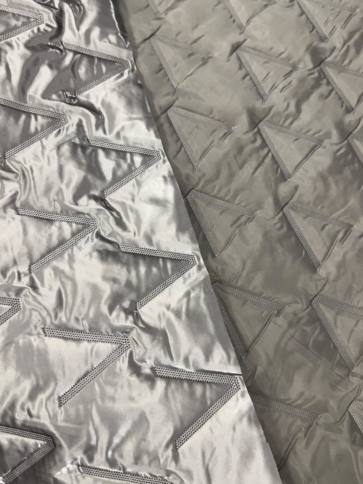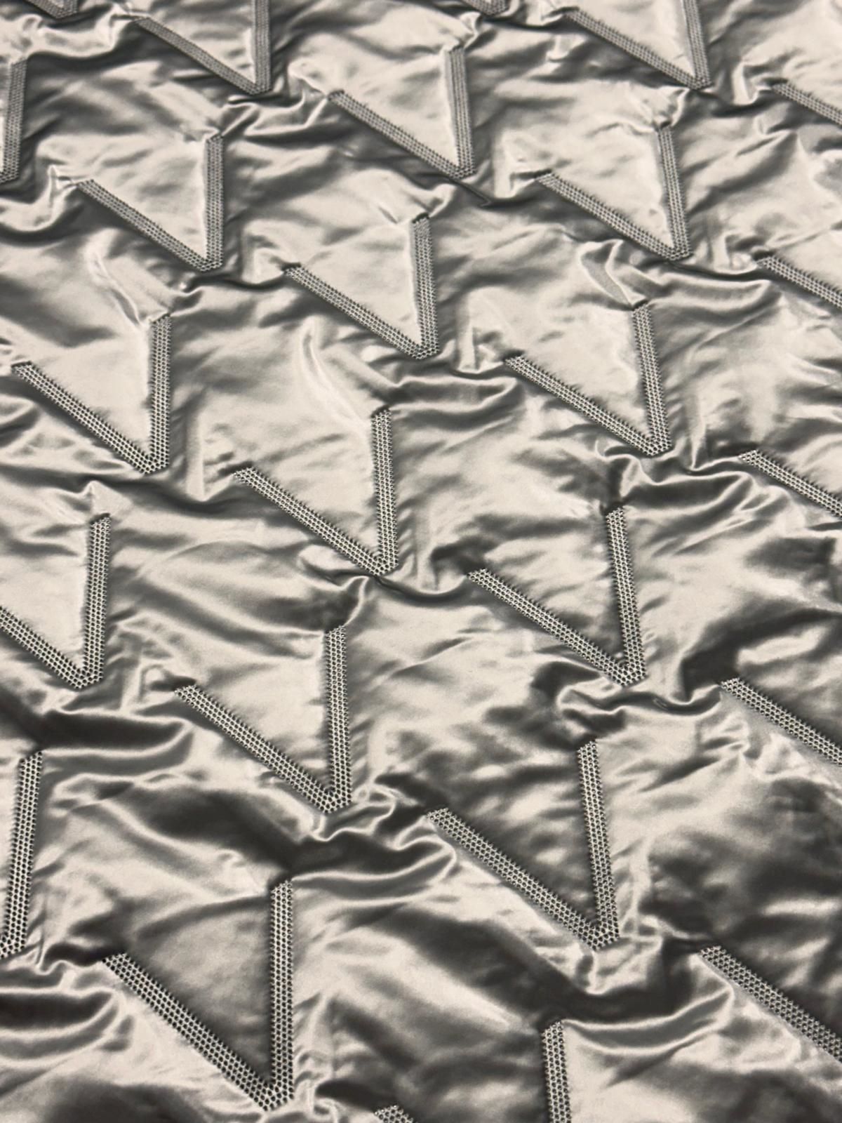Acolchado Leos Plata, el estampadode este acolchado trata de un pespunteado en el mismo color que hace formas de V.