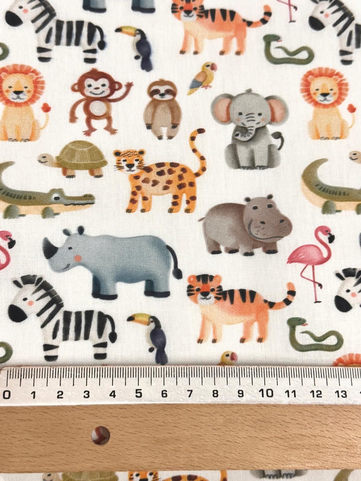 Algodón Animalia Zoo es una tela de algodón especialmente suave, fina y sostenida. Podrás confeccionar, vestidos, camisa y otras prendas de vestir.