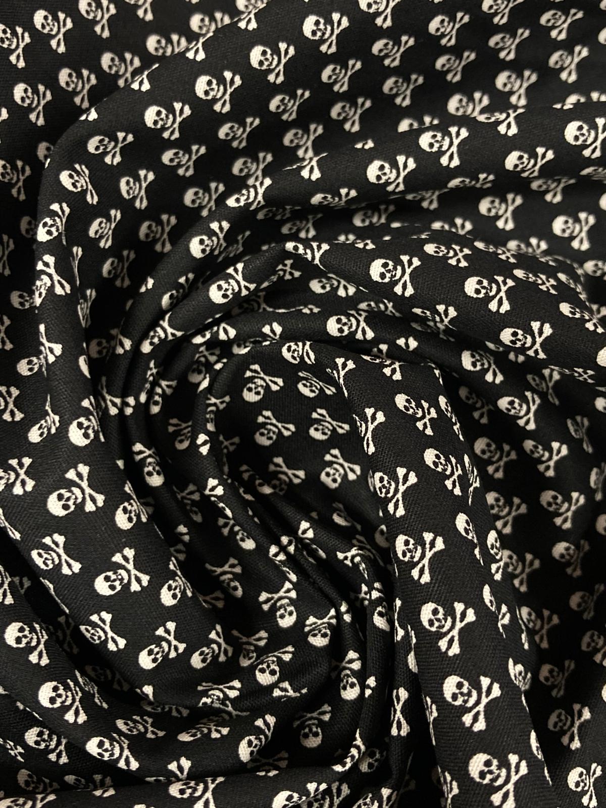 Algodón Calaveras mini negro es una tela de algodón suave, fina y sostenida. Podrás confeccionar camisas, vestidos, faldas , pajaritas, pañuelos