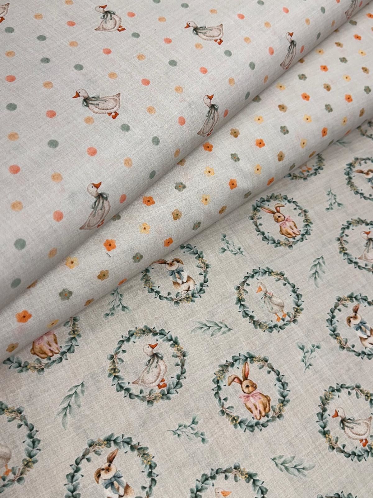 tela de algodón suave, fina y sostenida. Podrás confeccionar, vestidos, faldas , peleles, bolsos de bebé, colchas, arrullos, patchwork, etc .