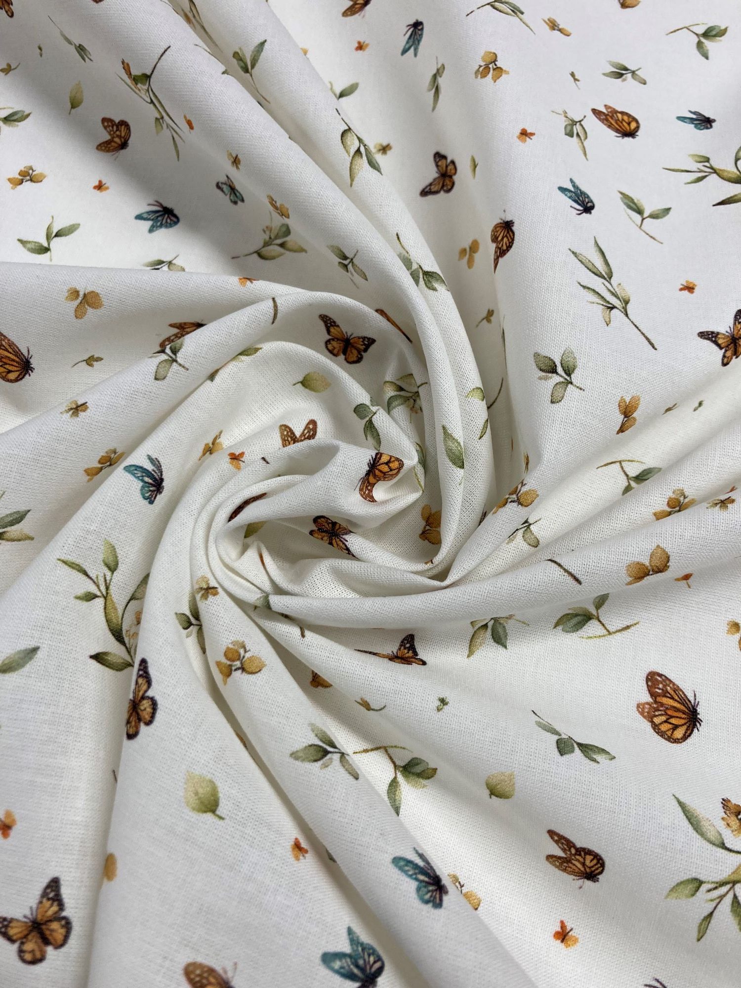 Algodón mariposasy hojas es una tela de algodón especialmente suave, fina y sostenida. Podrás confeccionar, vestidos, camisa y otras prendas de vestir.