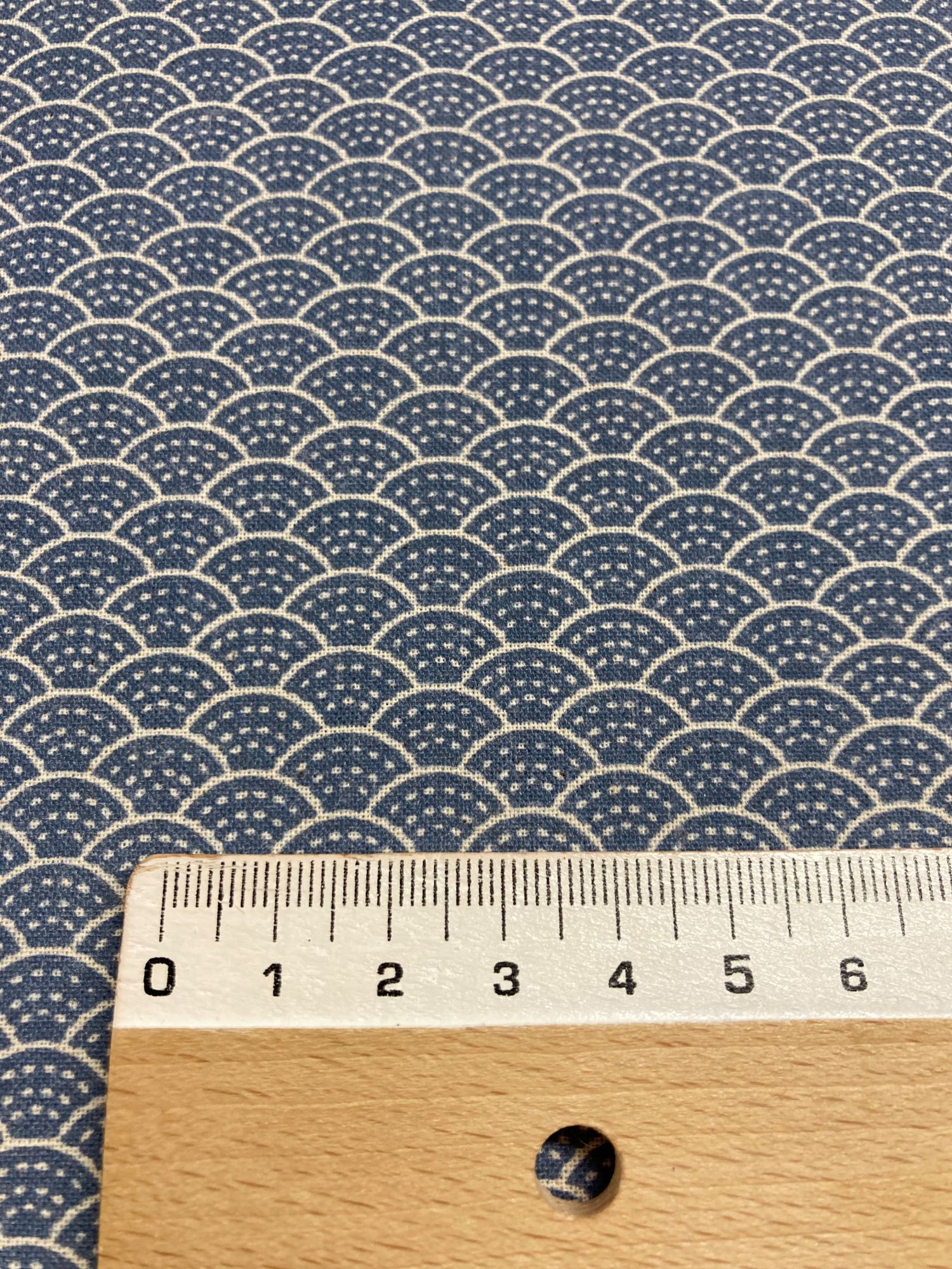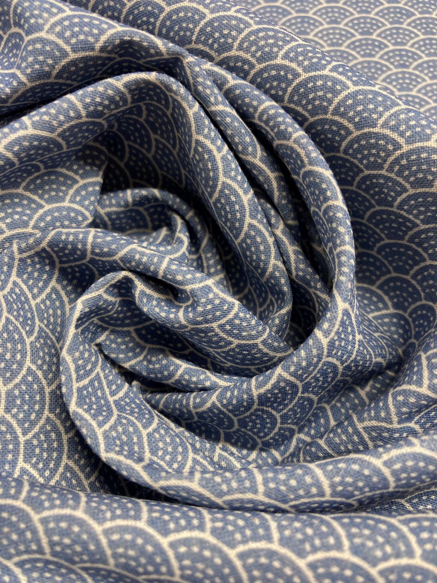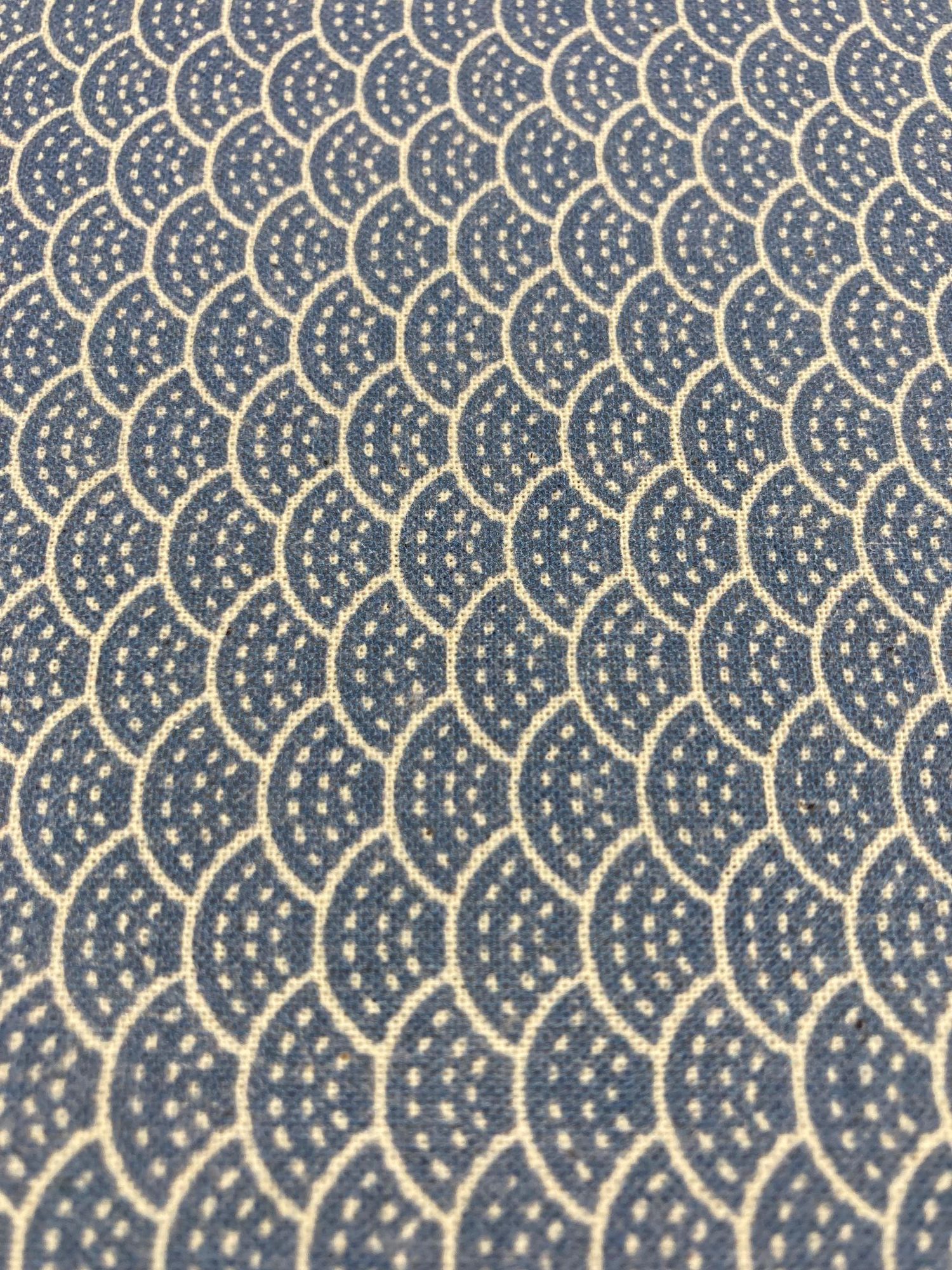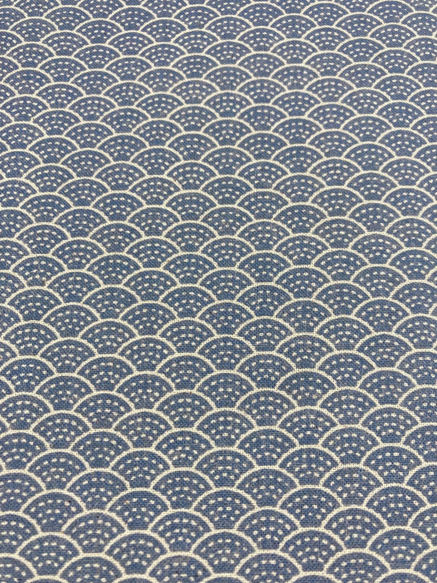 Estampado pequeño en forma de abanicos en tonos azul y crudo