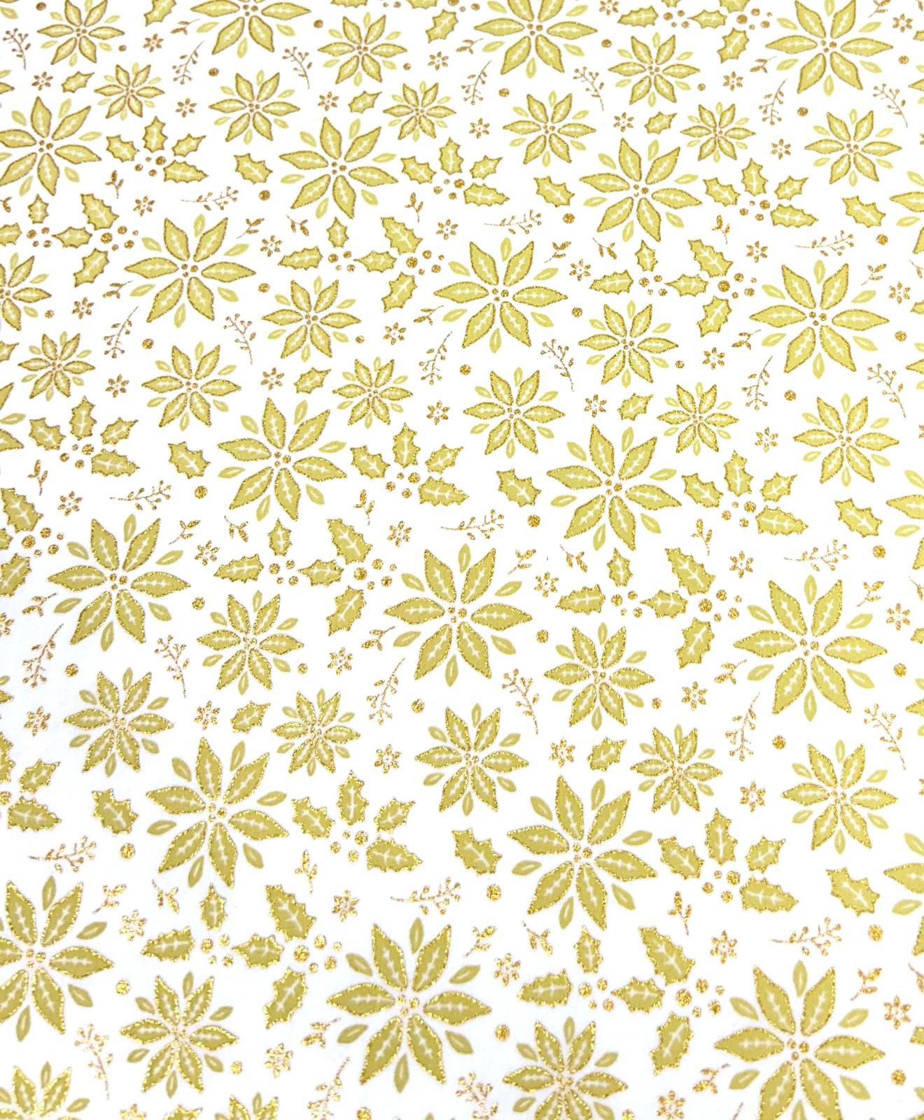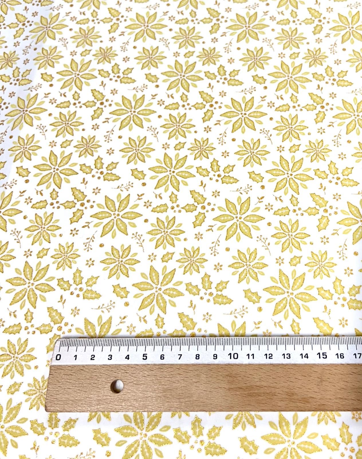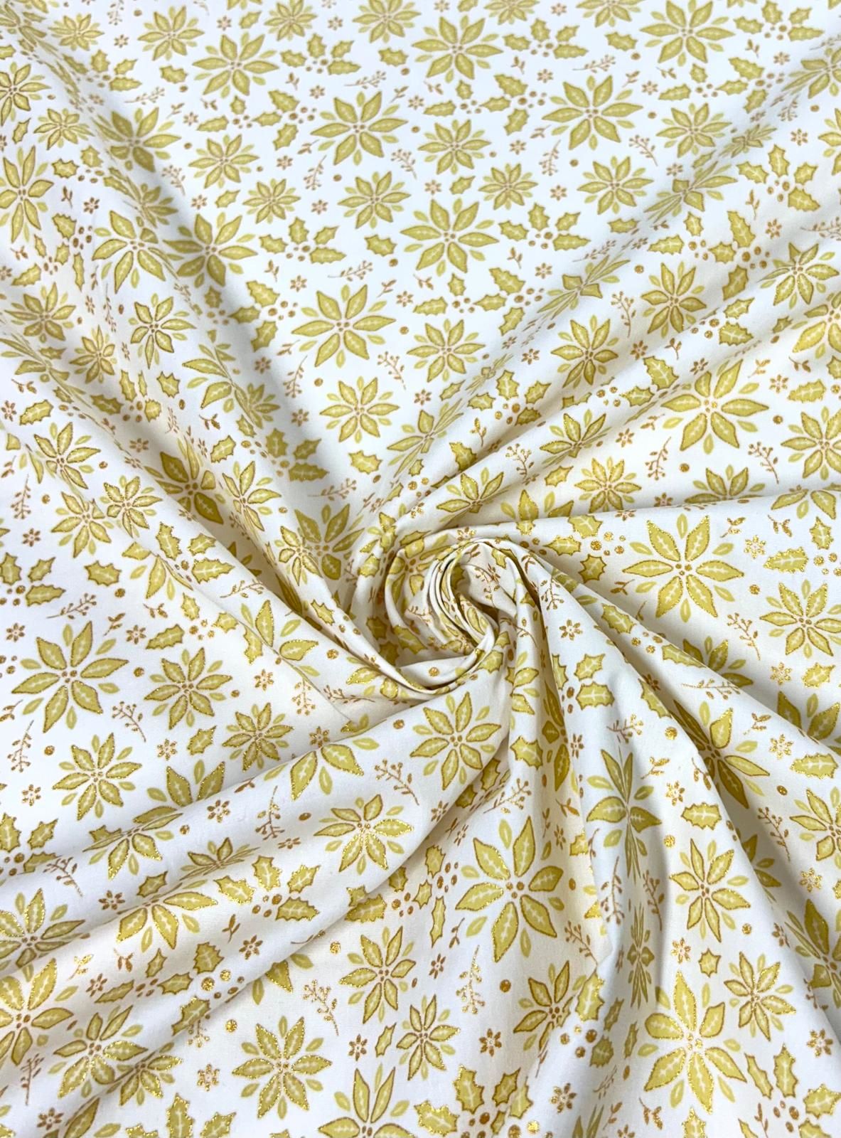 Algodón estampado navideño de estrellas en dorado con fondo Beige.