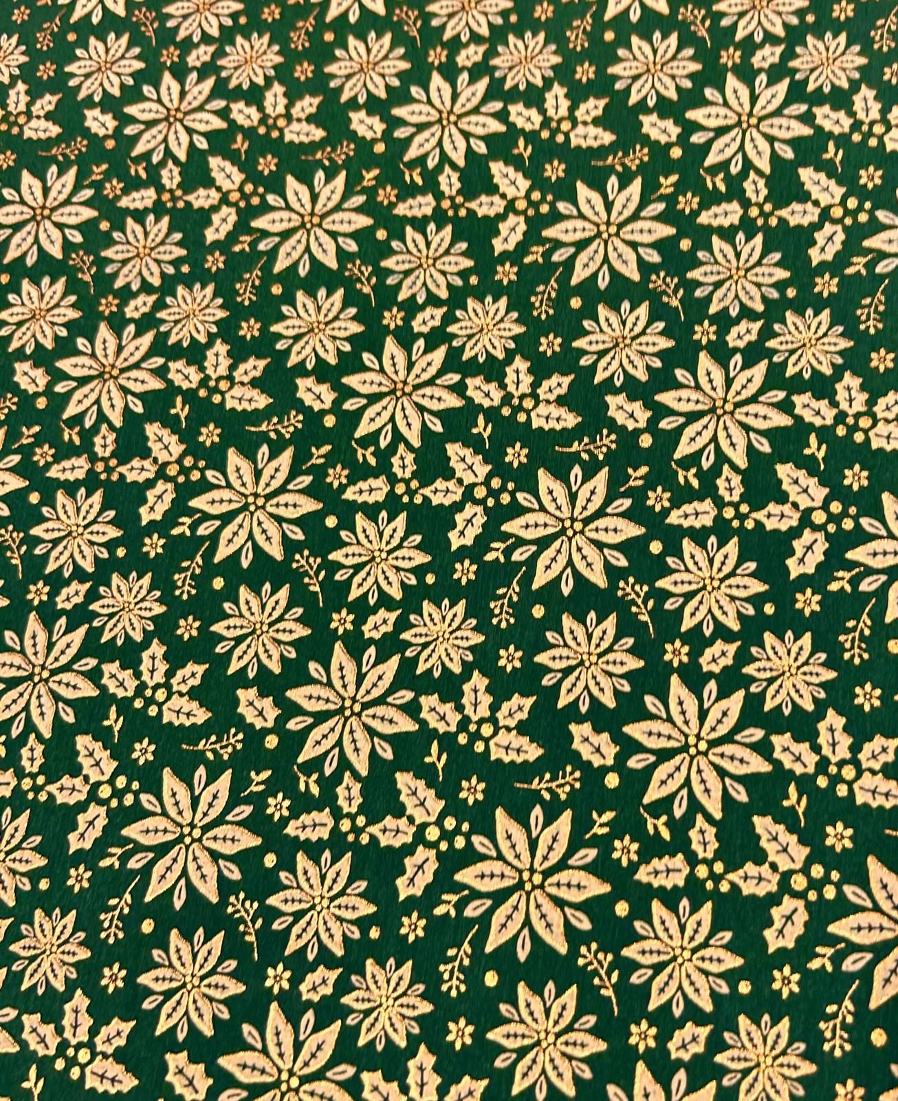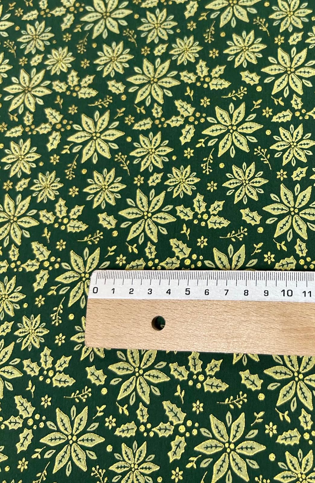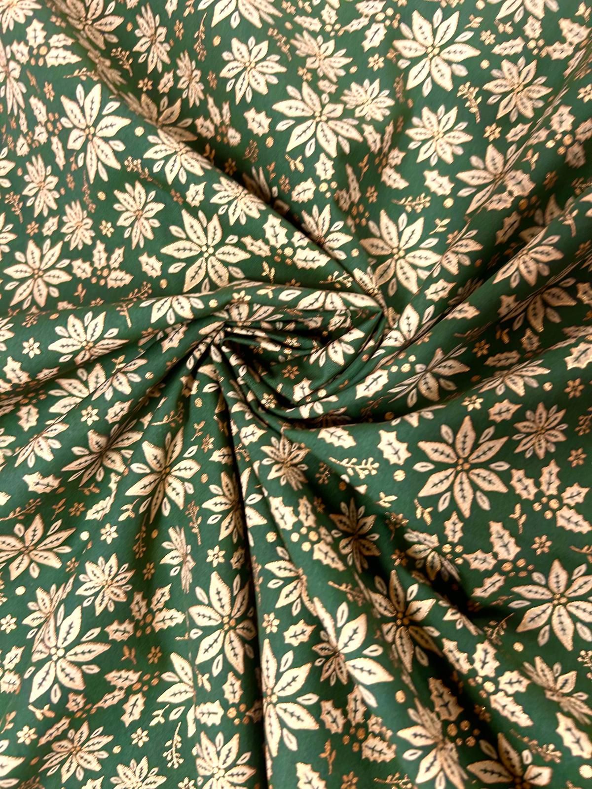 Algodón estampado navideño de estrellas en dorado con fondo Verde.