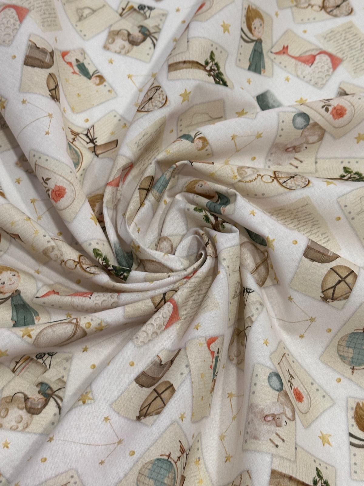 Algodón New principito book es una tela de algodón especialmente suave, fina y sostenida. Podrás confeccionar, vestidos, camisa y otras prendas de vestir.