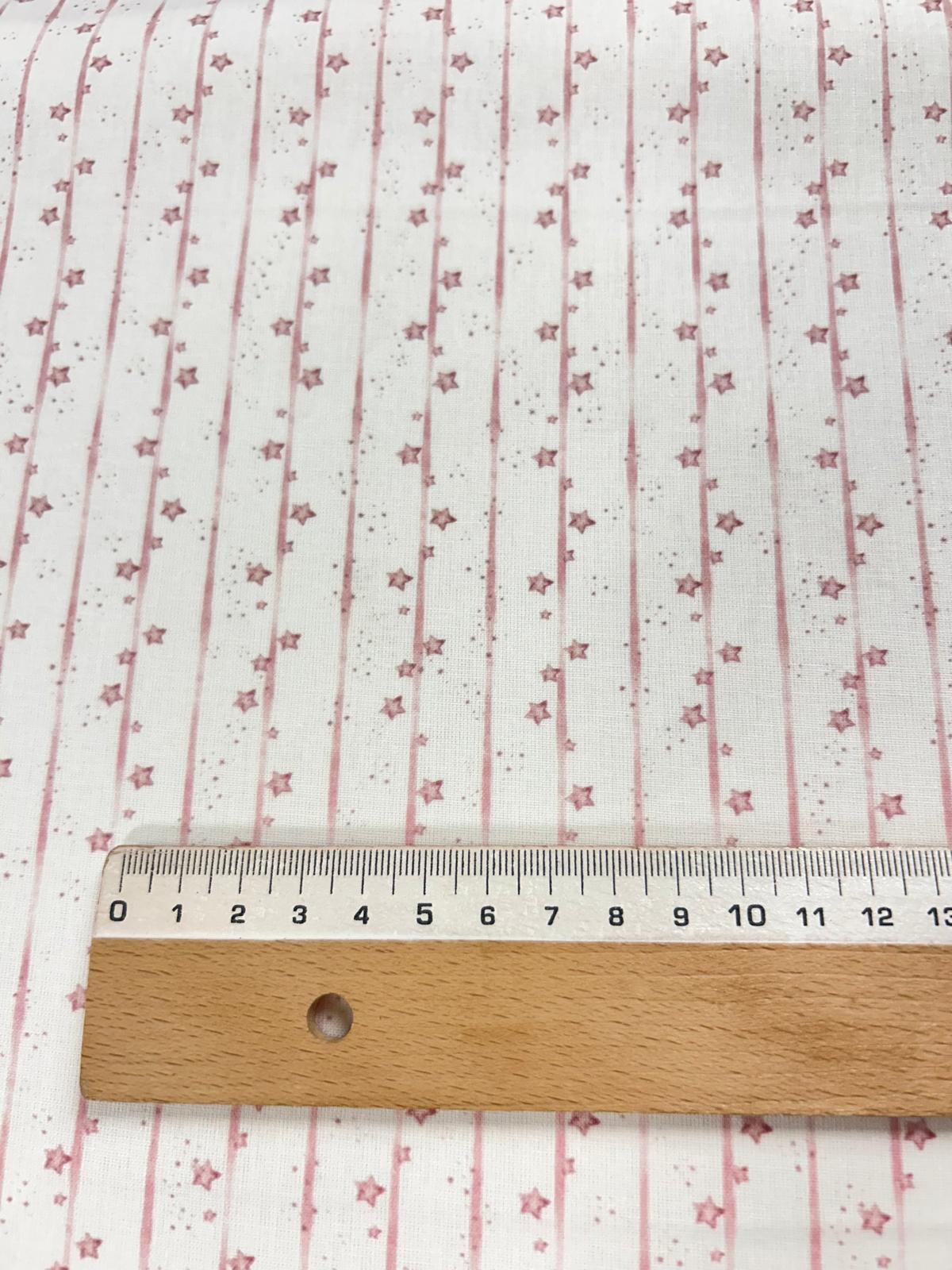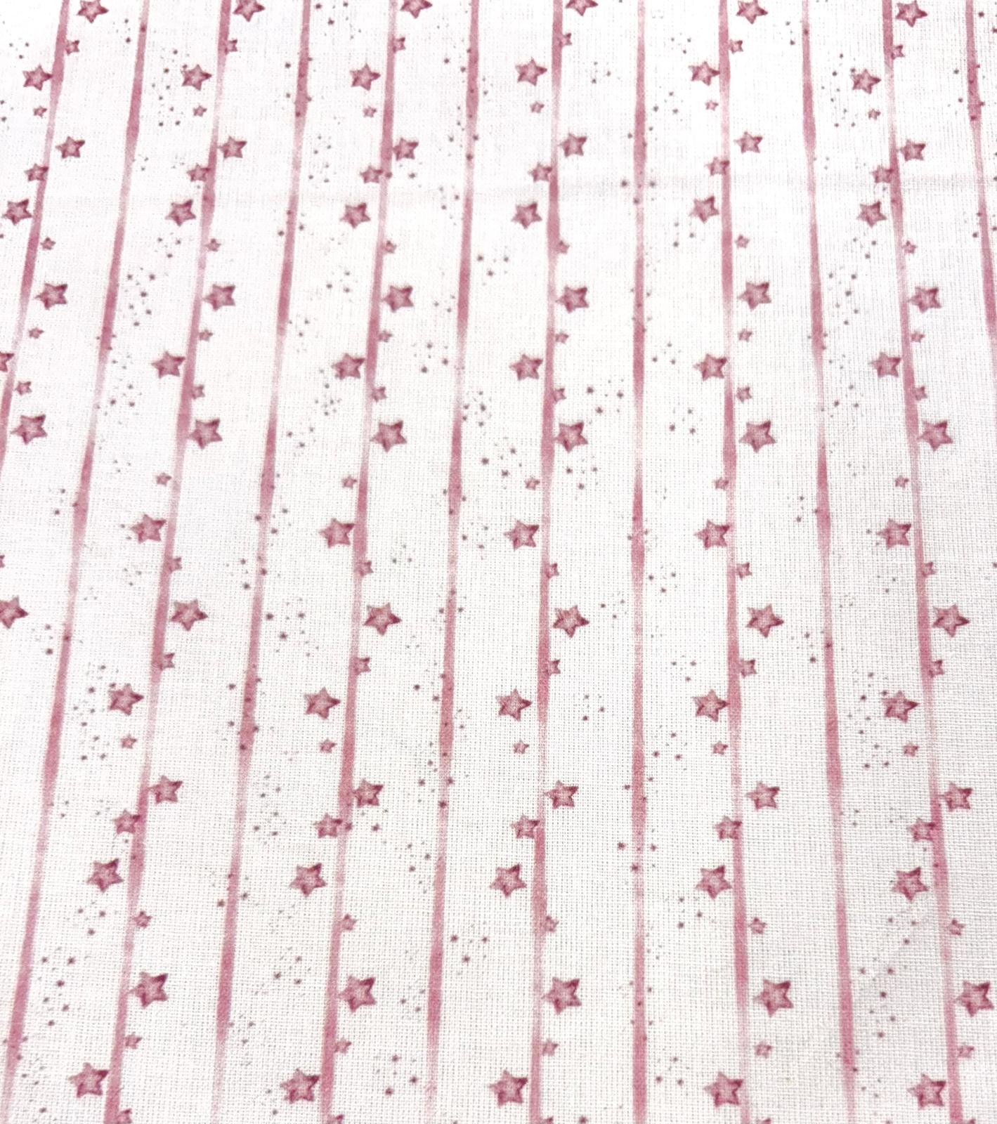Algodón Reborn estrellas rosa, es un estampado de estrellas en tono rosa sobre fondo blanco.