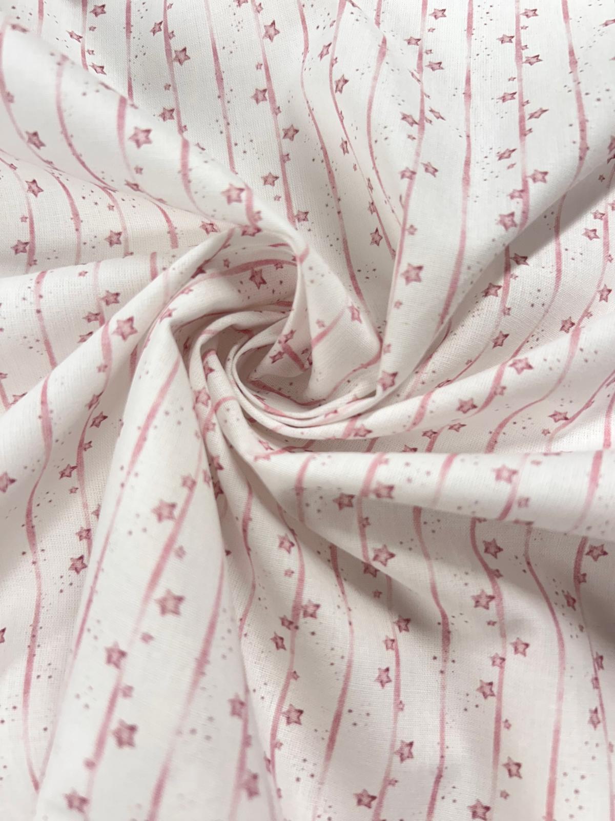 Algodón Reborn estrellas rosa es una tela de algodón especialmente suave, fina y sostenida. Podrás confeccionar, vestidos, camisa y otras prendas de vestir.