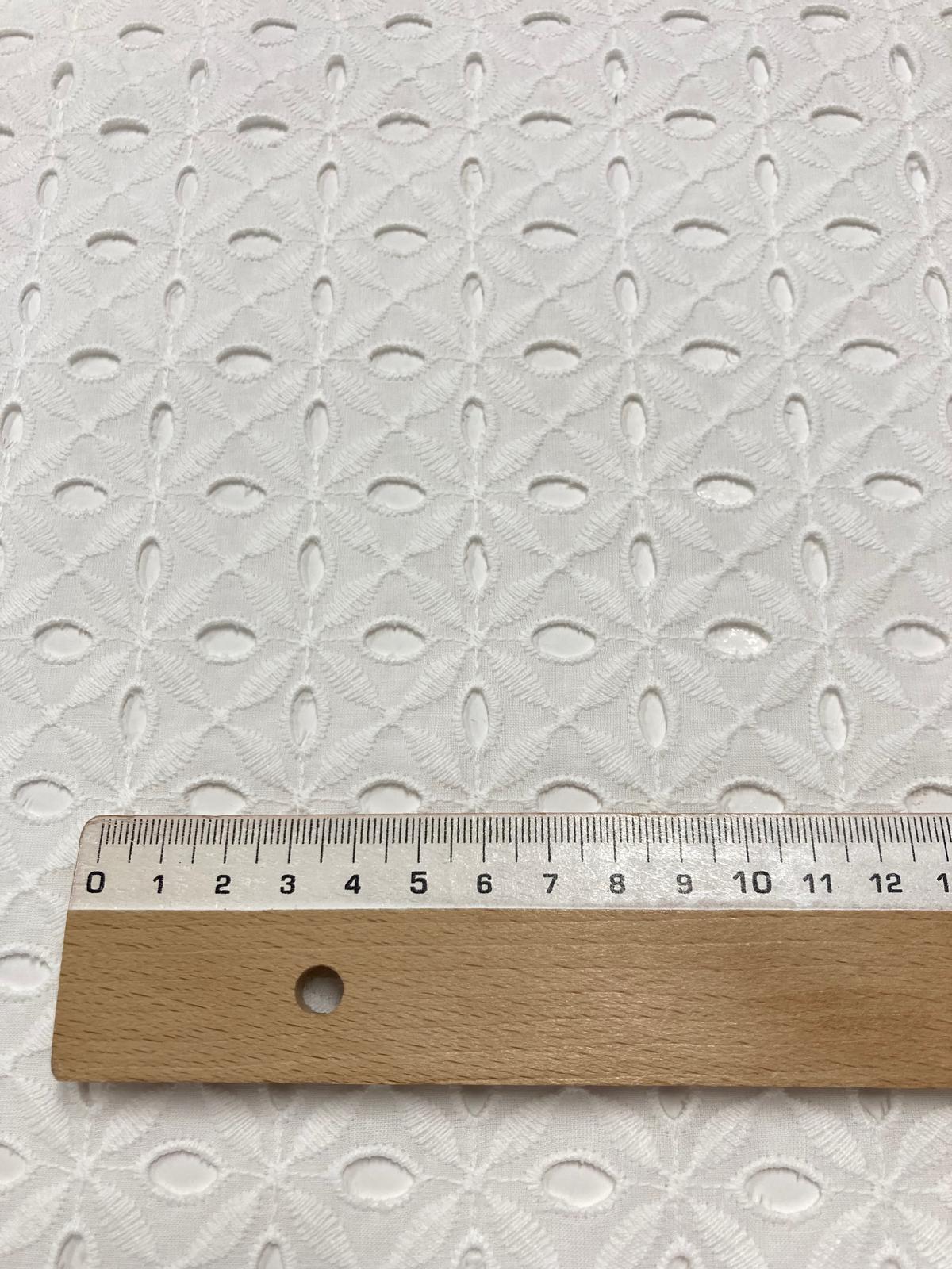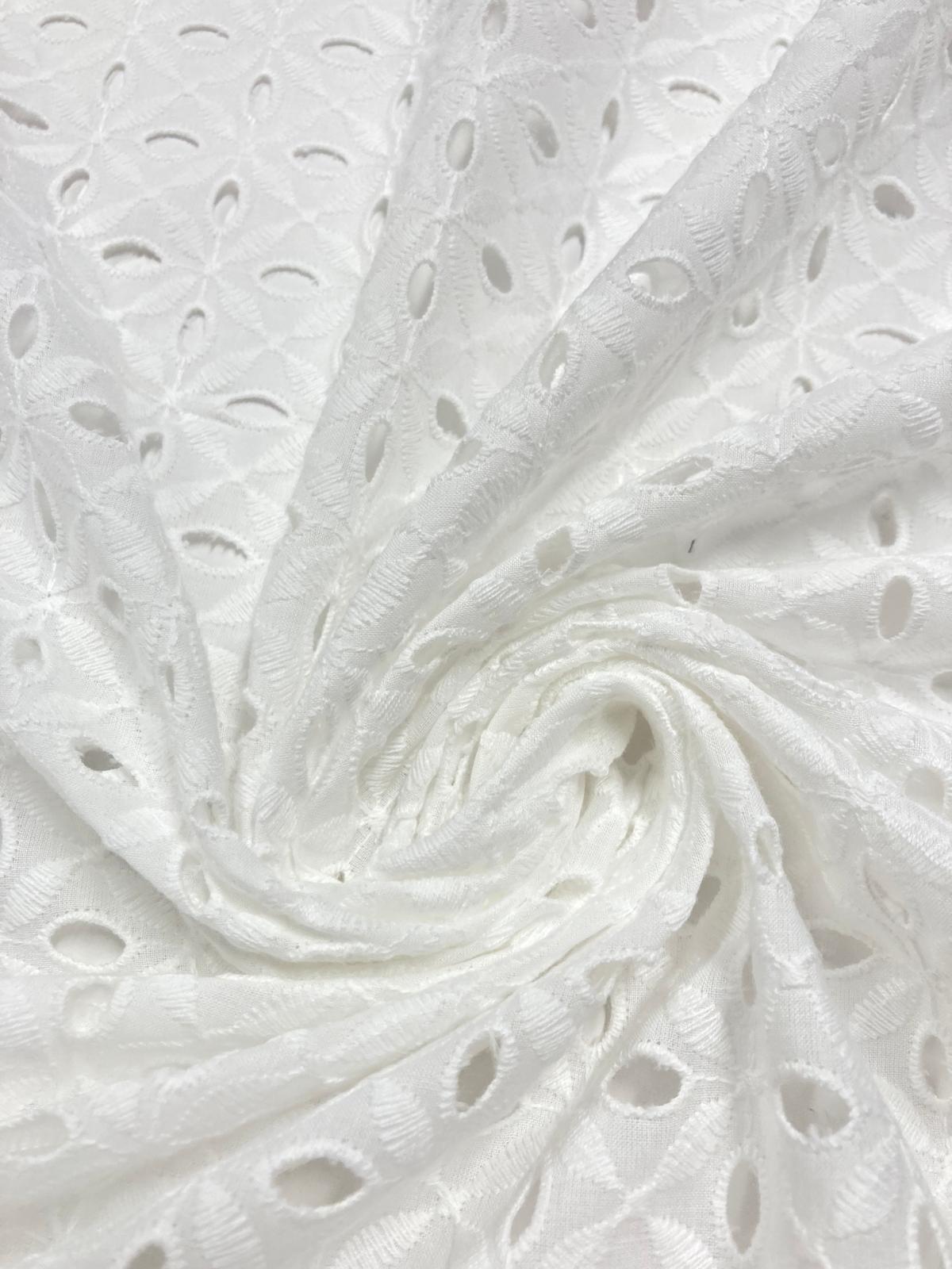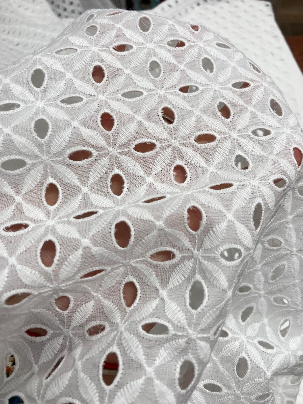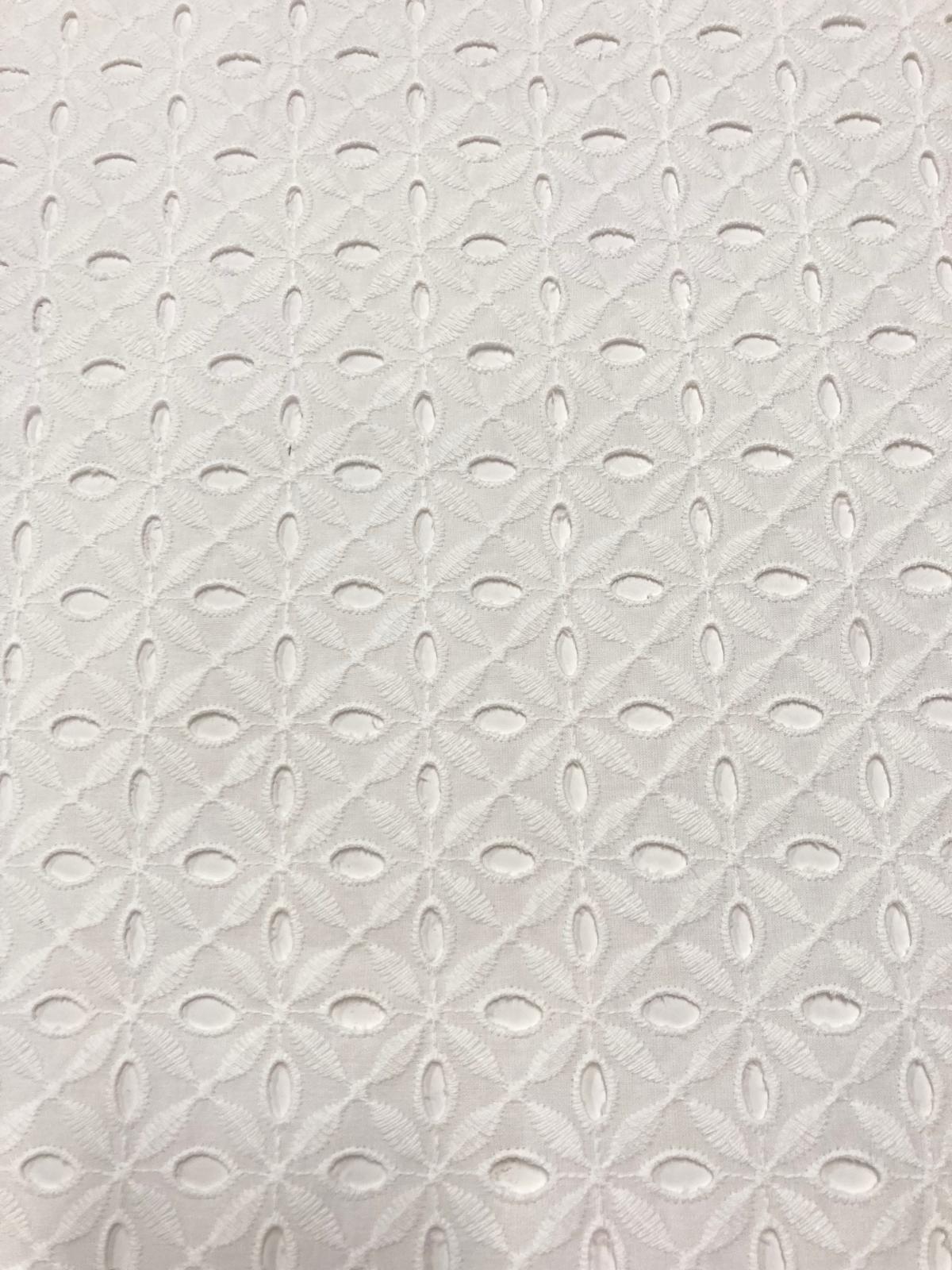 Preciosa batista 100% algodón blanca bordada y perforada.