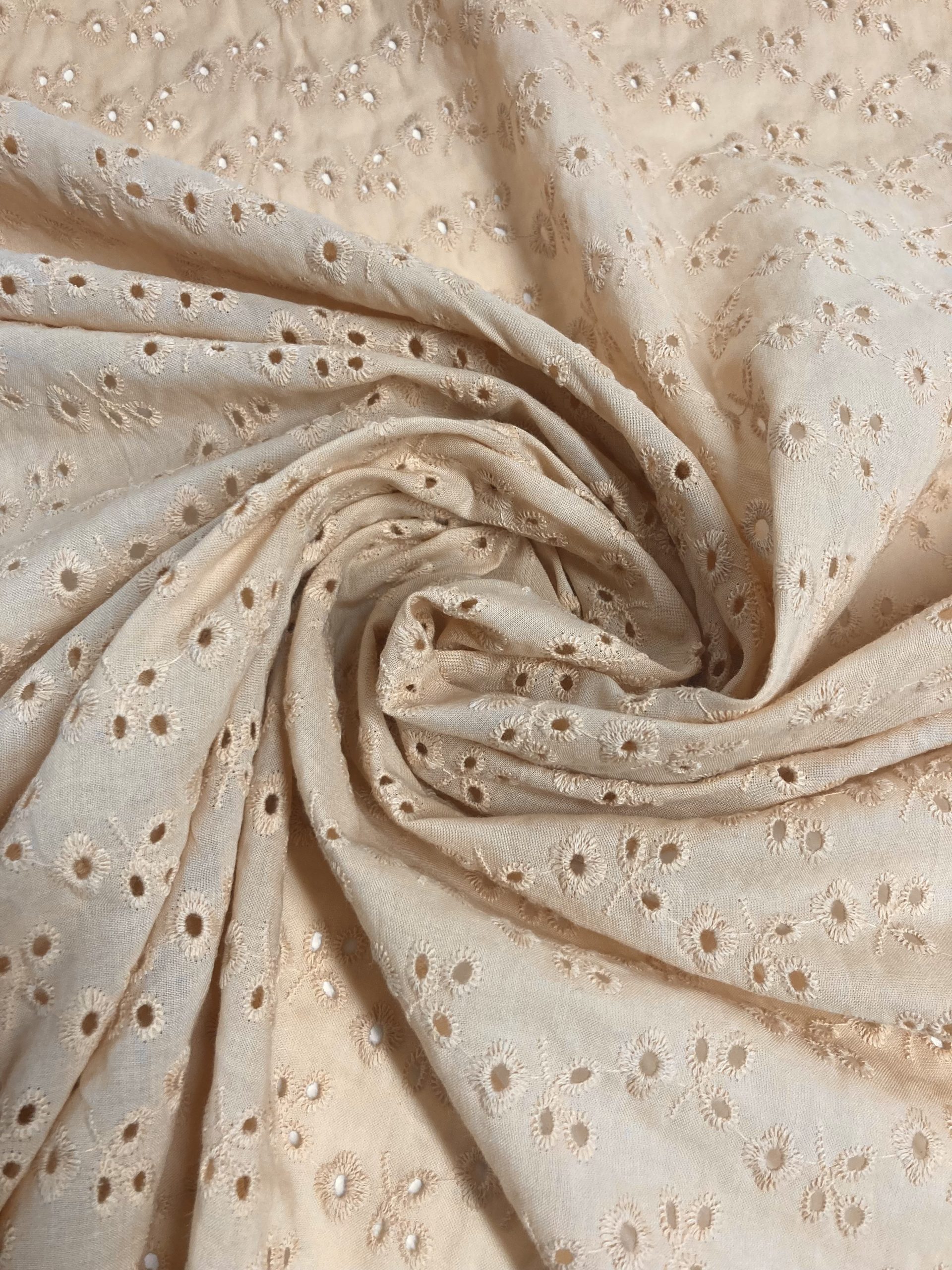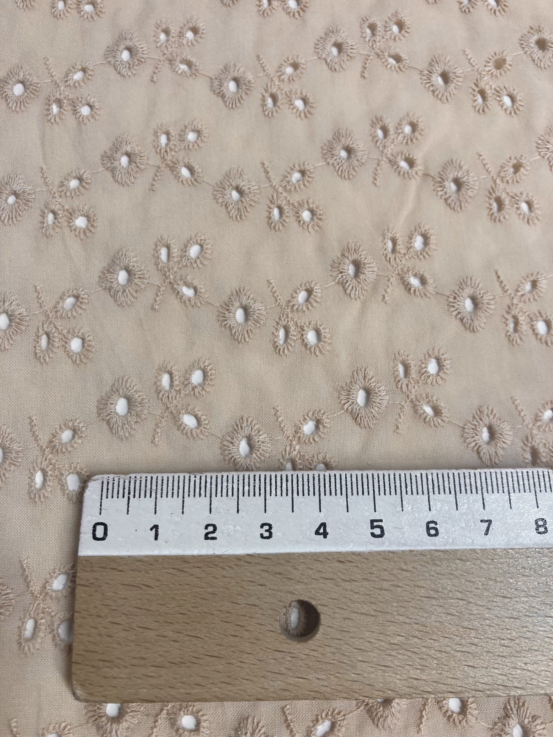 Preciosa batista 100% algodón beige tostado bordada y perforada.