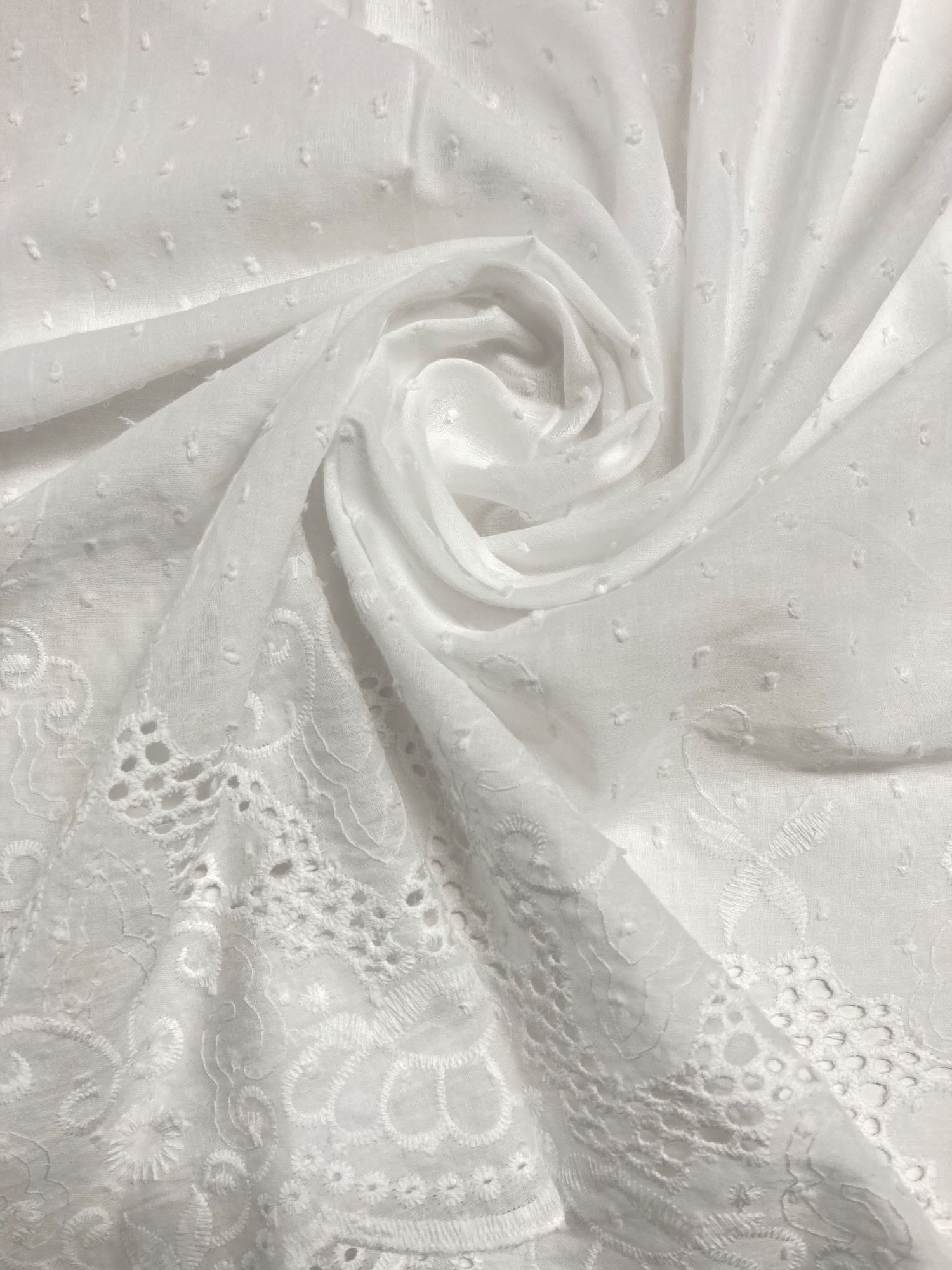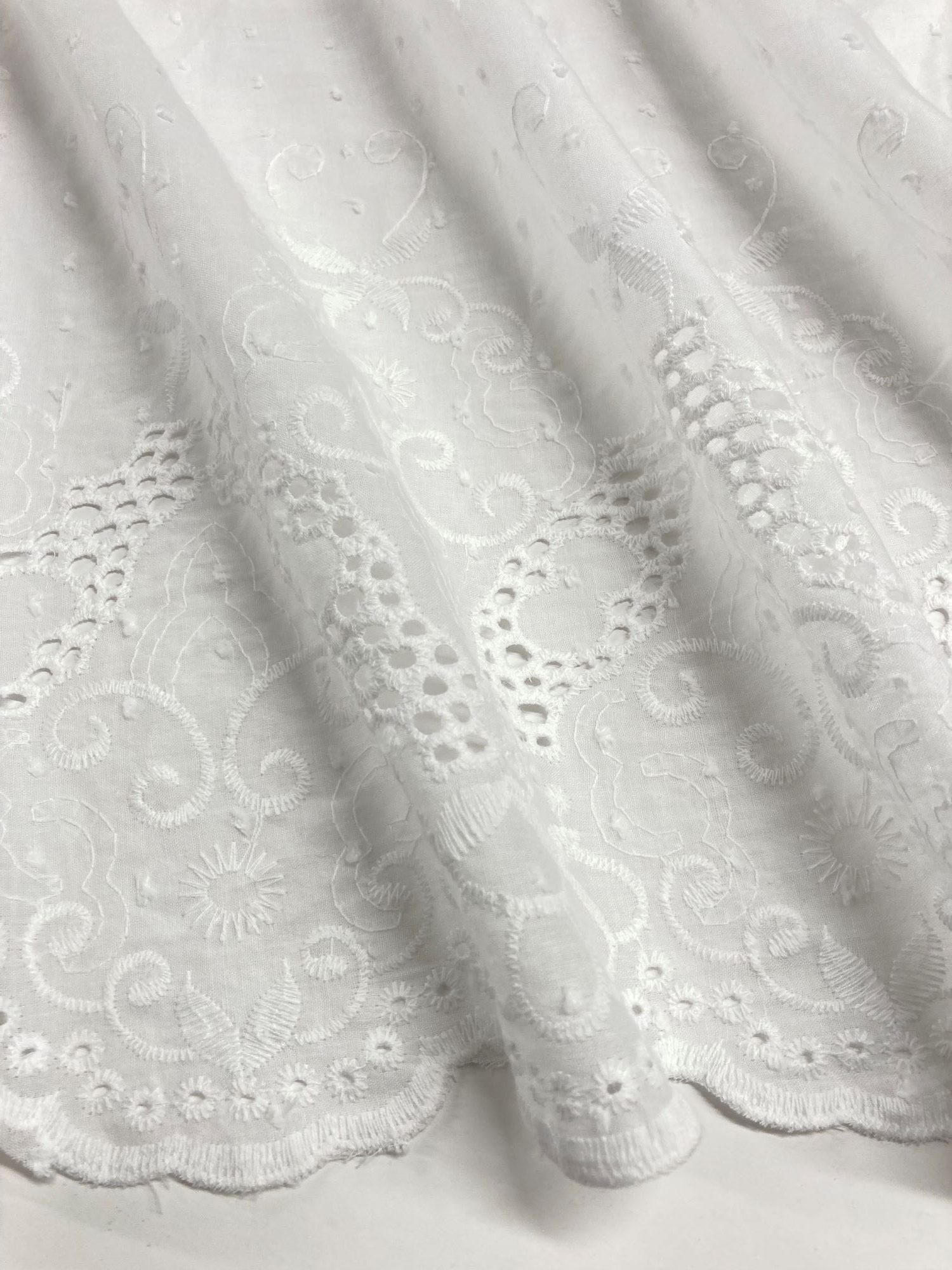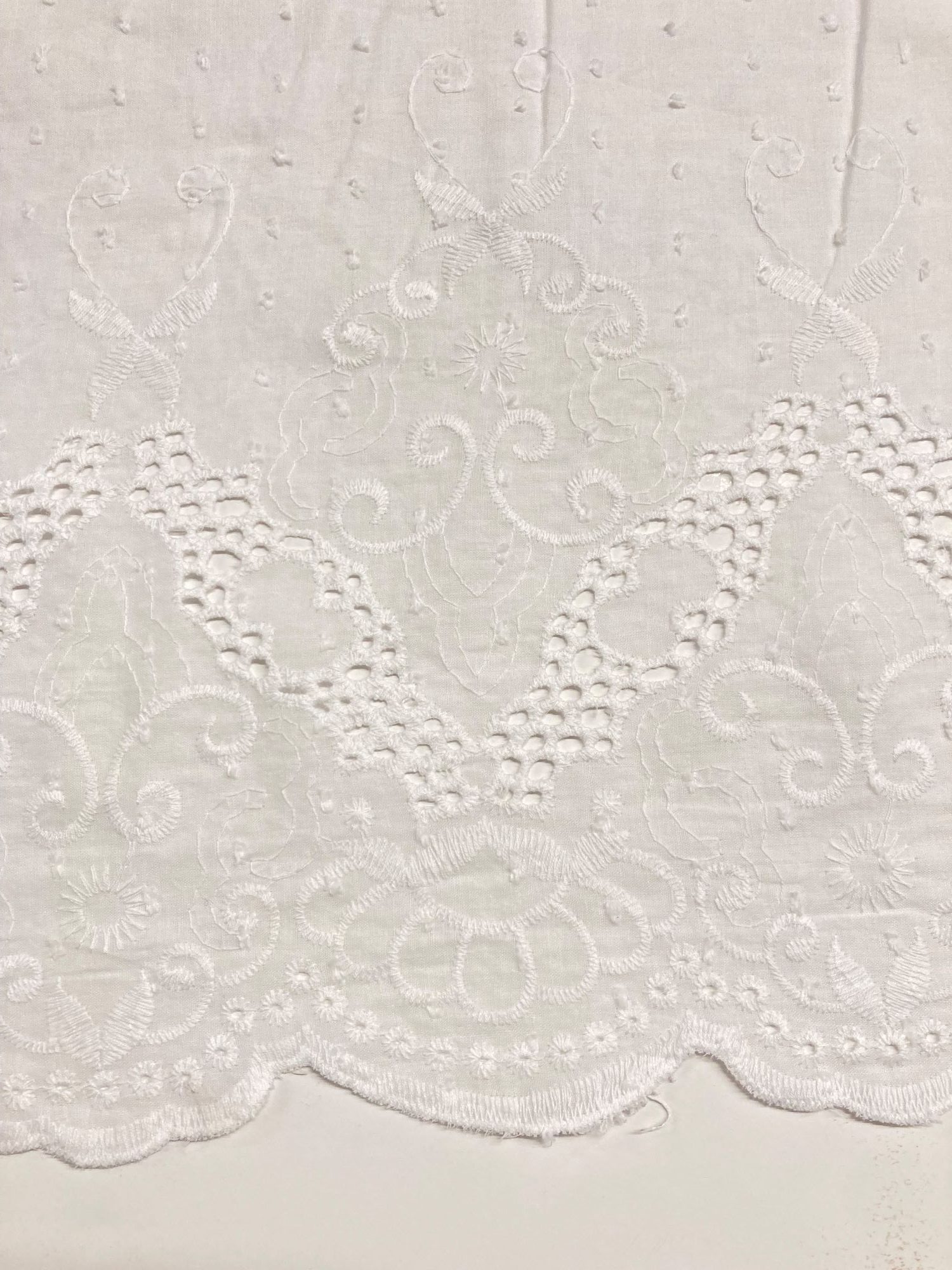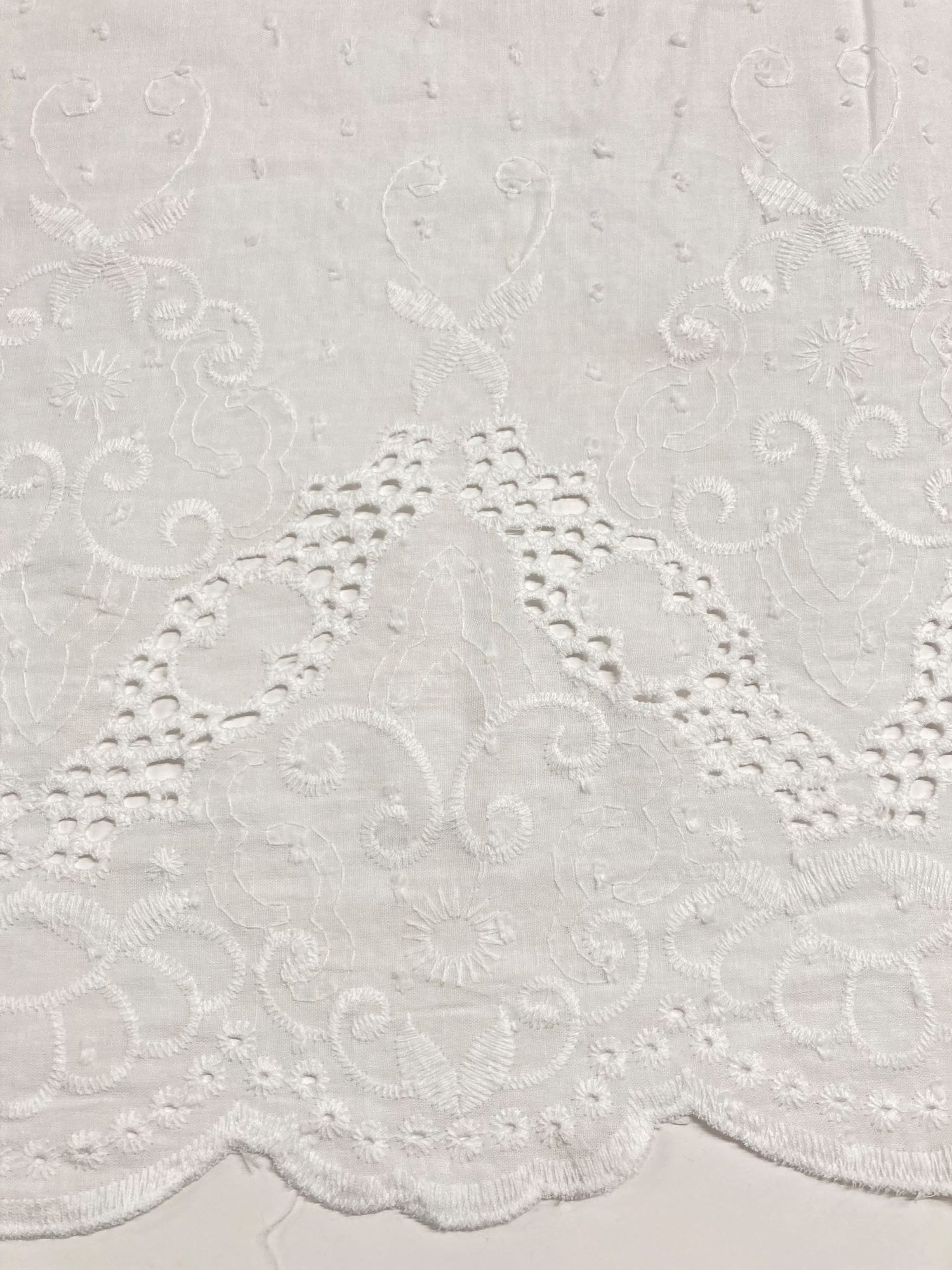 Preciosa batista 100% algodón blanca óptima bordada y perforada.