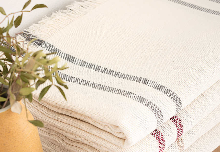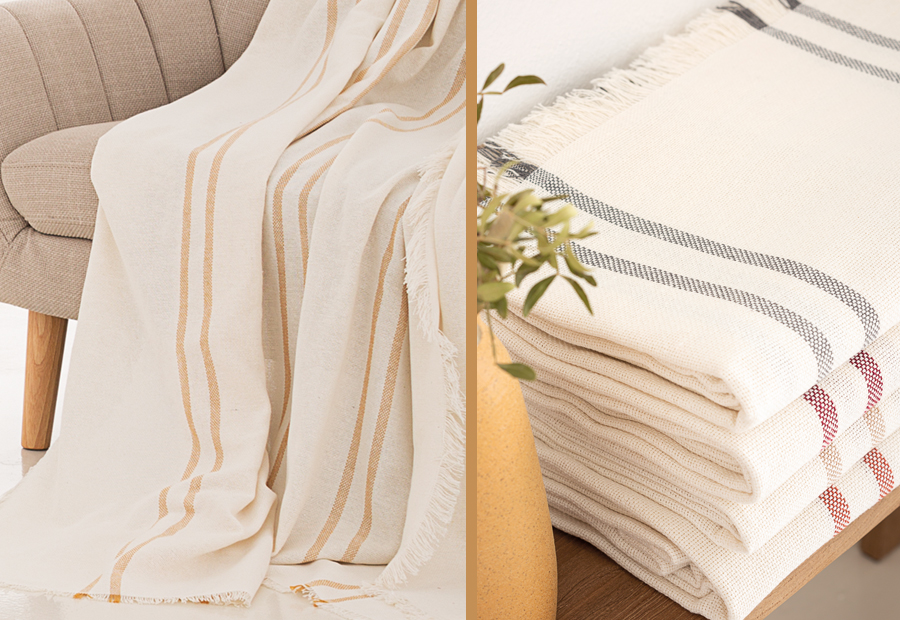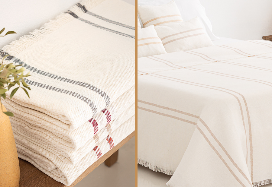 Colcha multiusos con flecos válida para uso como colcha de cama, pie de cama o como funda de sofá.