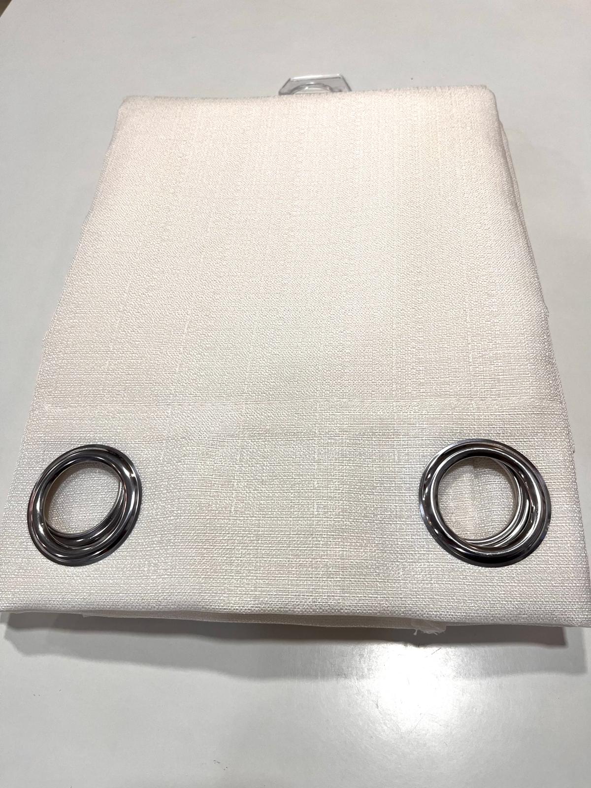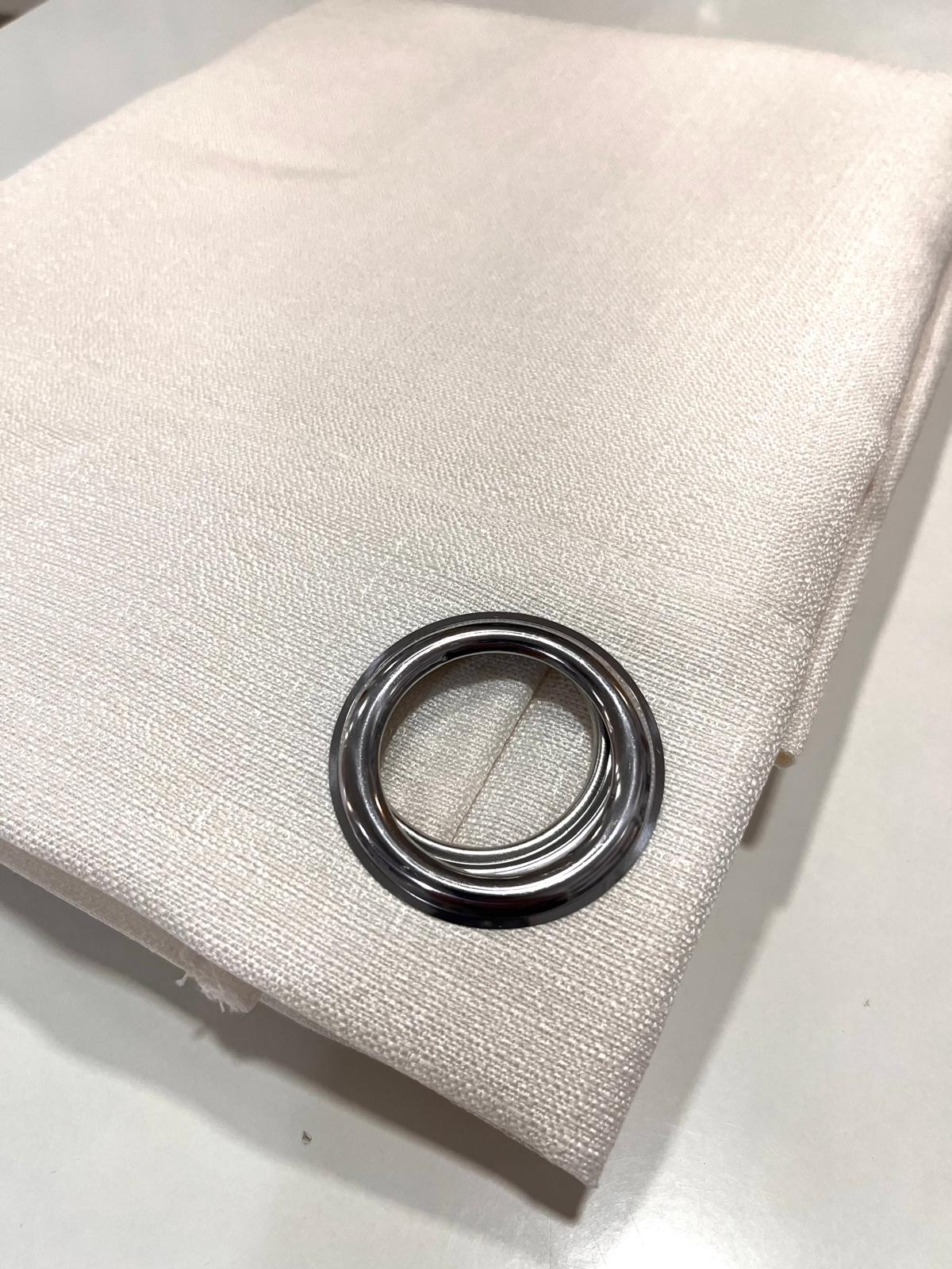 Cortina confeccionada beig con ollaos de acero inoxidable.