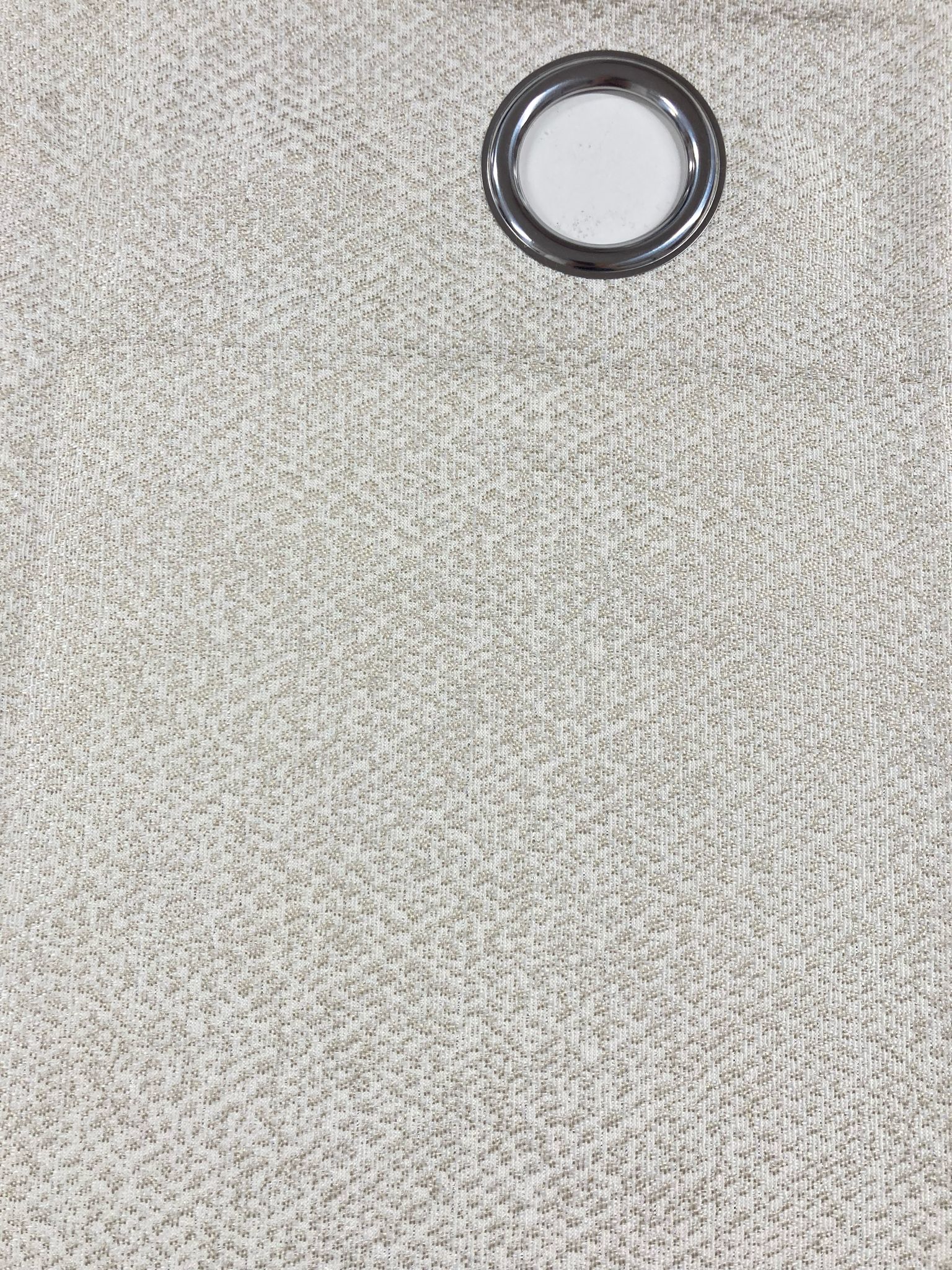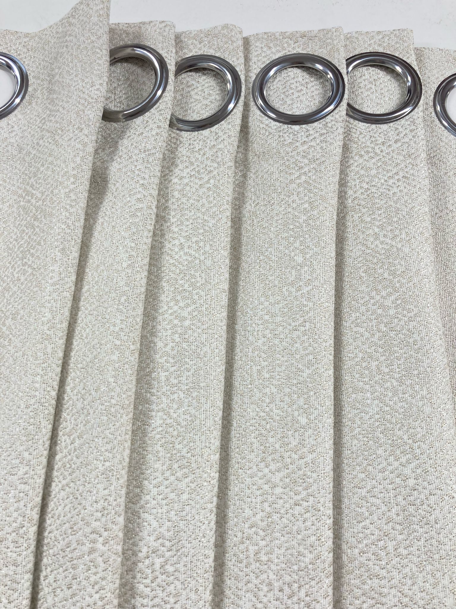 Cortina confeccionada beig con ollaos de acero inoxidable.