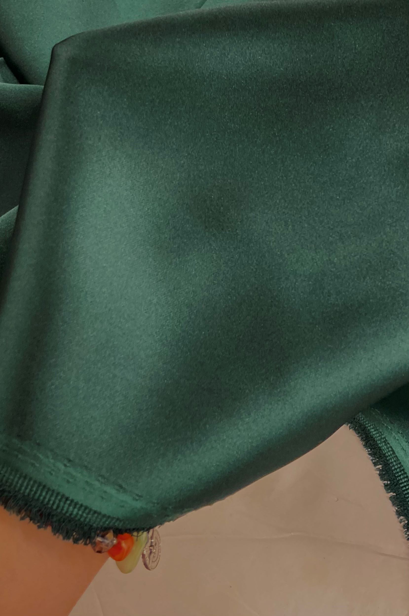 El color de este crepe satén es verde botella.
