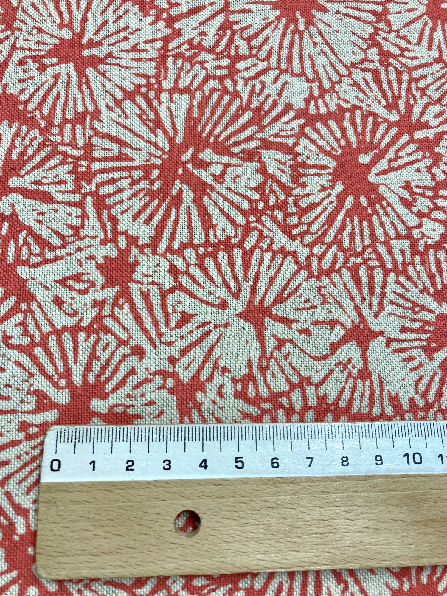 Color fondo coral , estampado en el color lino que es la base de la tela