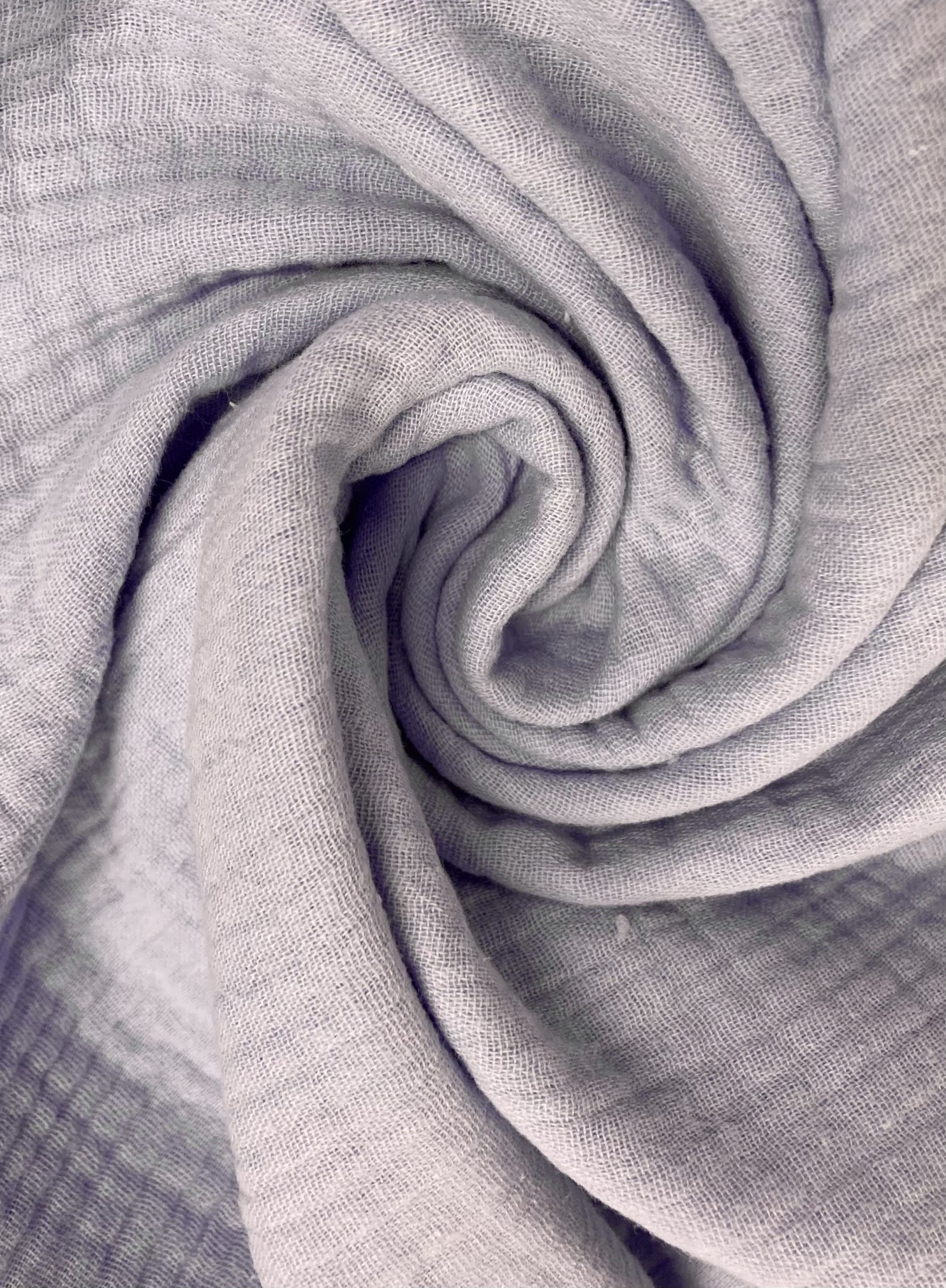 La tela doble gasa, también conocida como muselina es una tela que se utiliza muchísimo para prendas de vestir de bebé y complementos. Desde una camisa hasta un arrullo o vestiduras de un capazo.