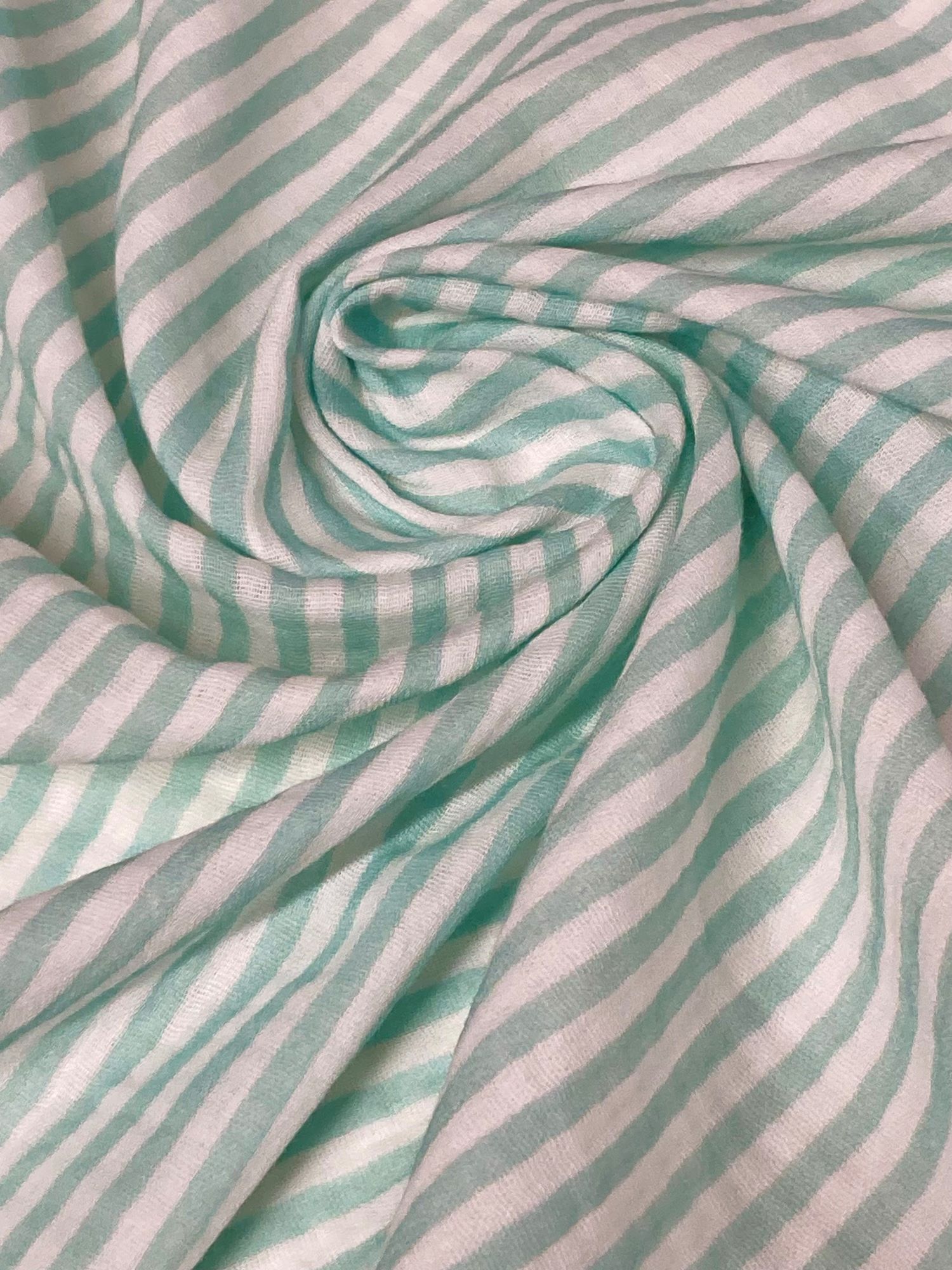 Doble gasa Katy rayas agua es una tela con un estampado de rayas de vichy en color verde agua.