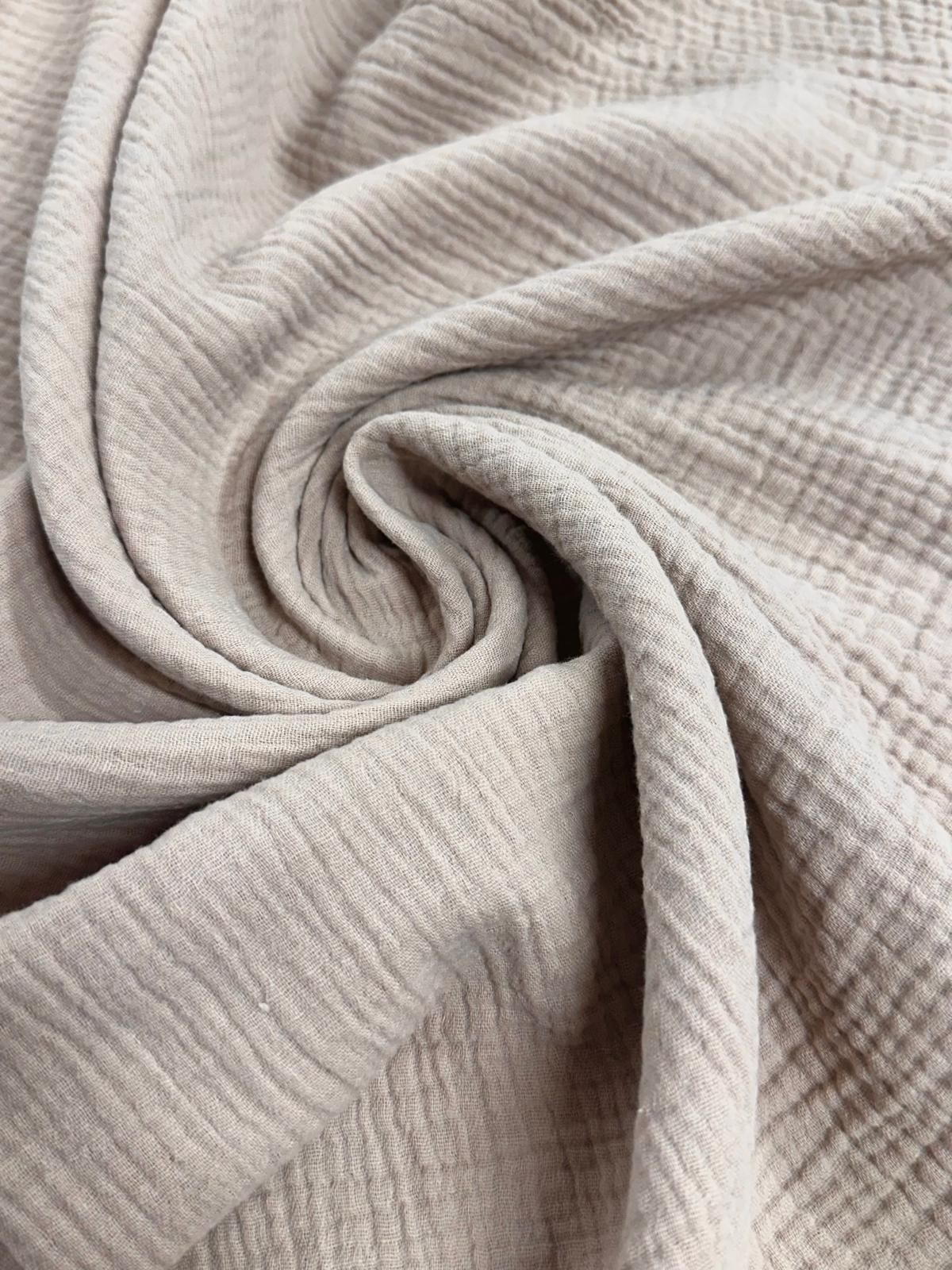 La tela doble gasa, también conocida como muselina es una tela que se utiliza muchísimo para prendas de vestir de bebé y complementos. Desde una camisa hasta un arrullo o vestiduras de un capazo.