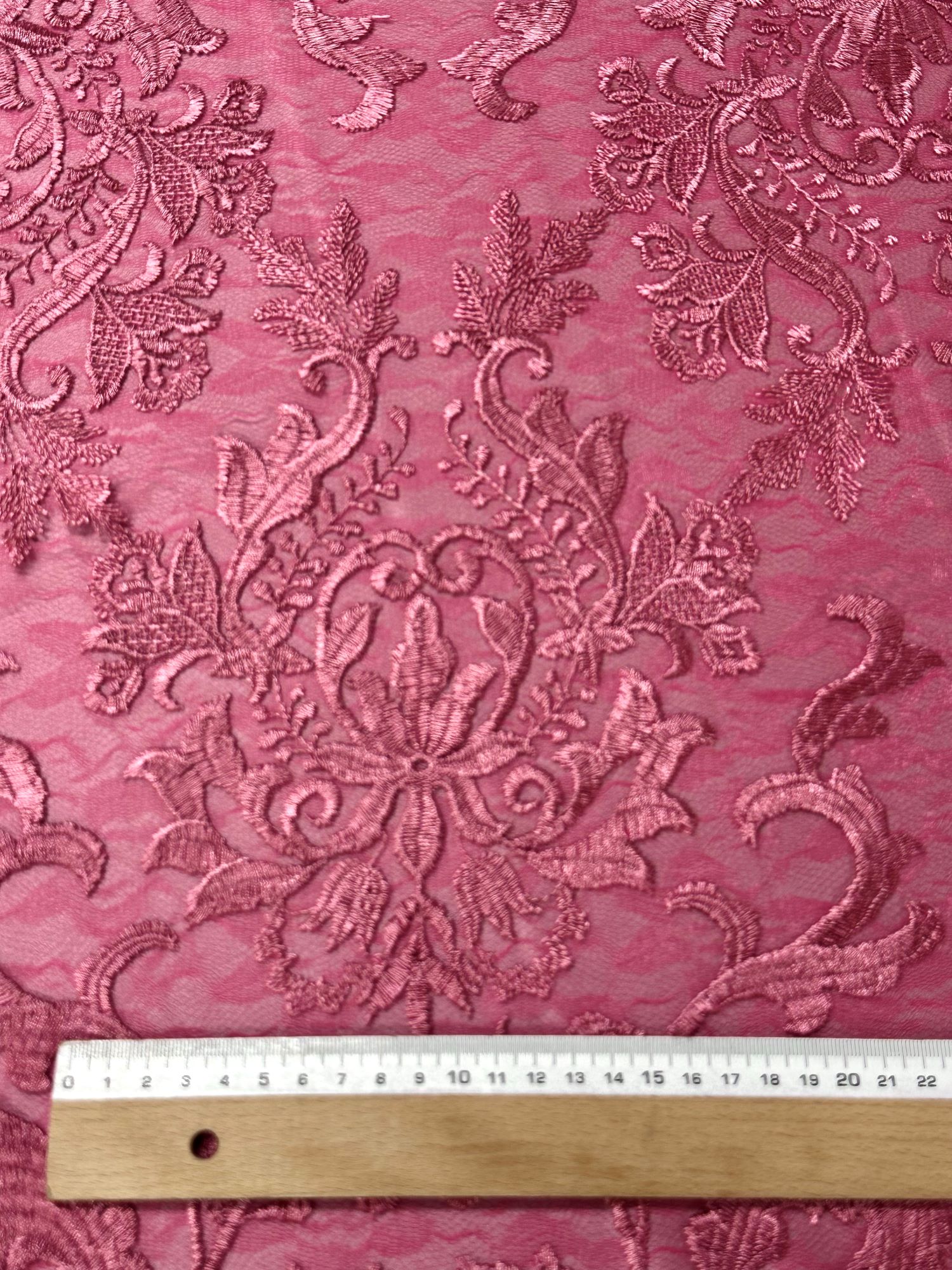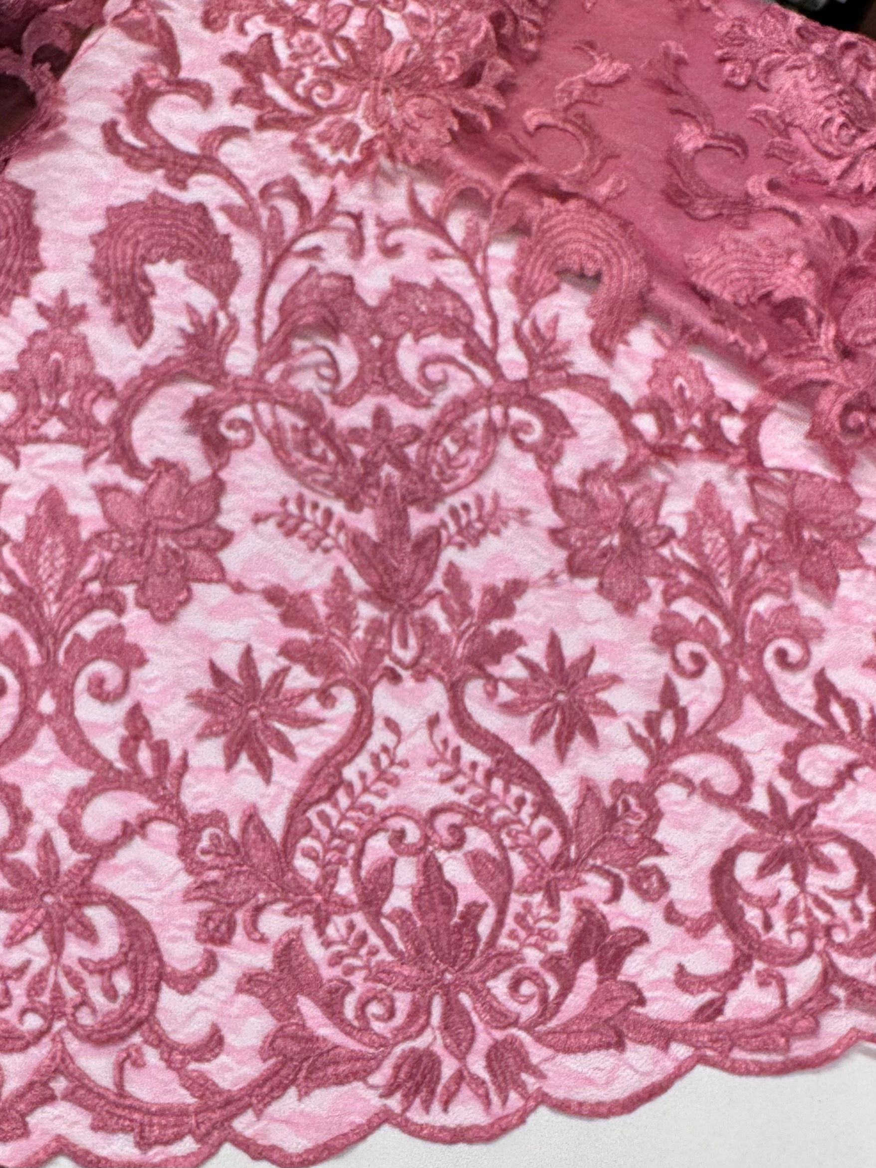 Encaje en color maquillaje, la base es una especie de redecilla, lleva puntas en ambos lados