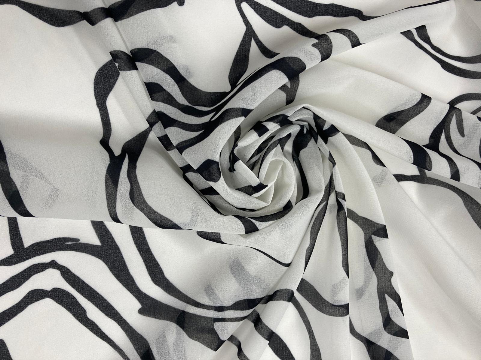 Tela de gasa en color blanco roto y negro, con mucha caída ideal para vestidos largos, blusas, es bastante transparente