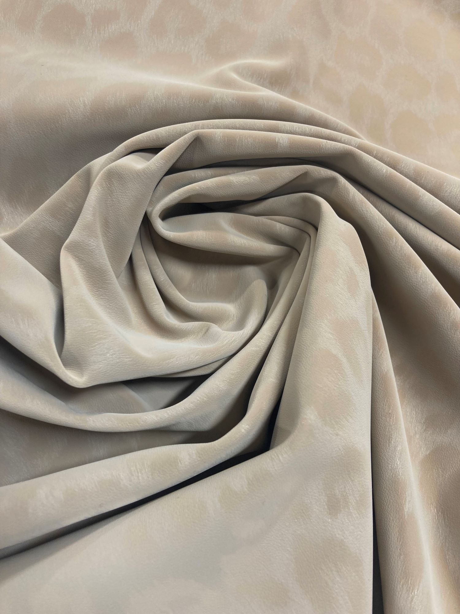 Se trata de una tela impermeable y elástica, estampada con motivo de animal print de leopardo en color piedra.