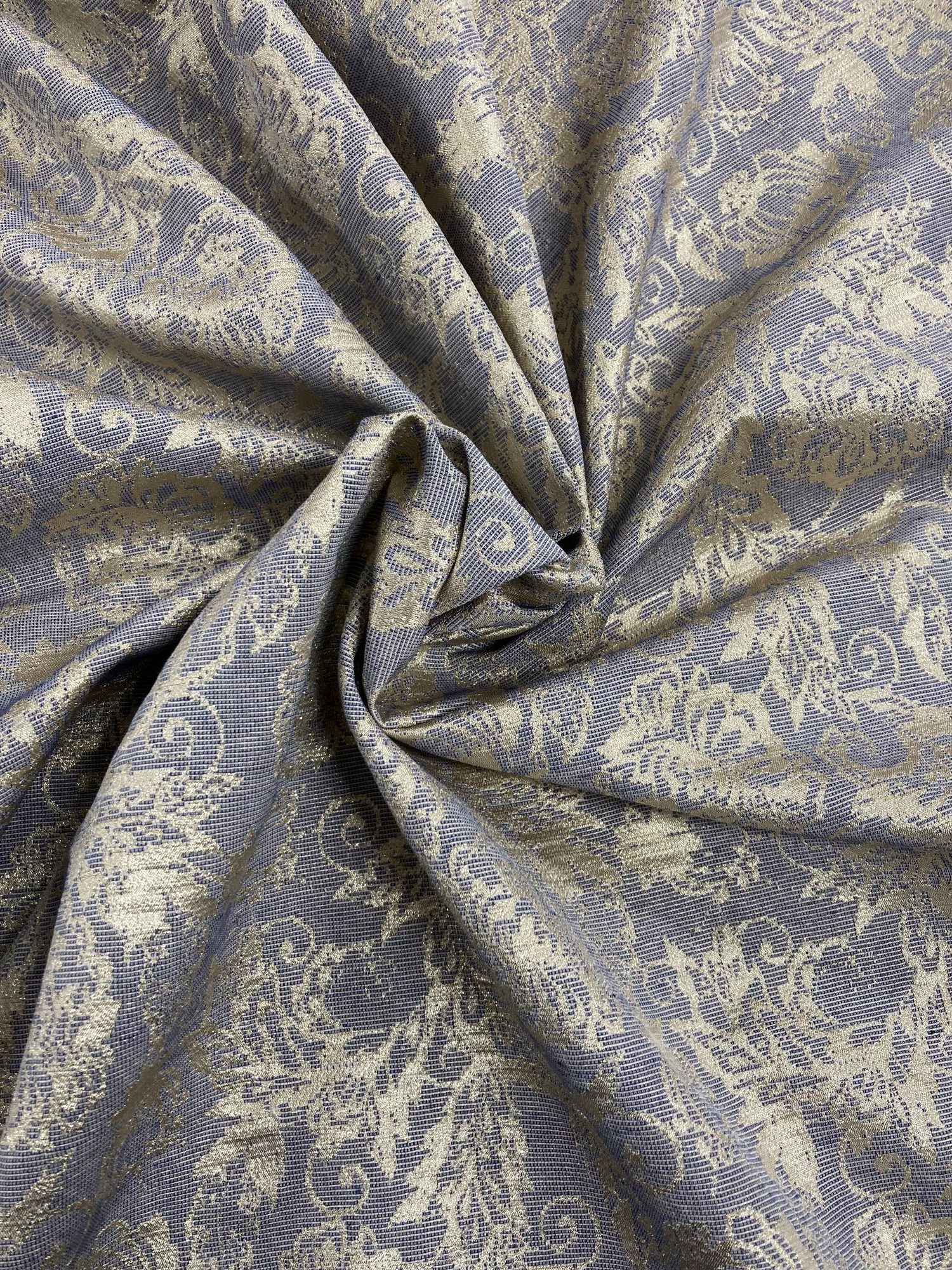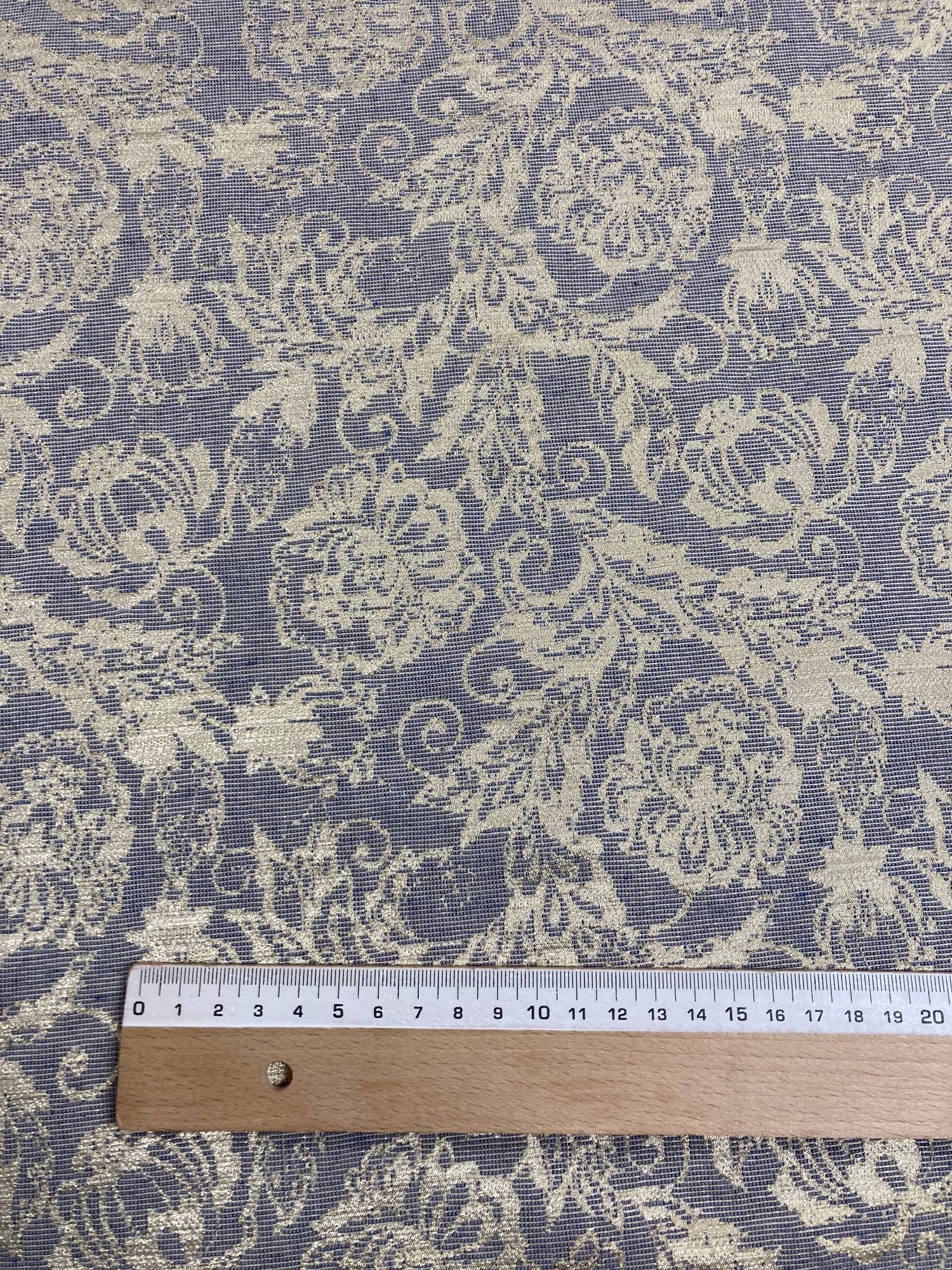 Este Jacquard el estampado es un brocado en tono dorado y azul. Predomina el dorado, pero tiene hilo azul.