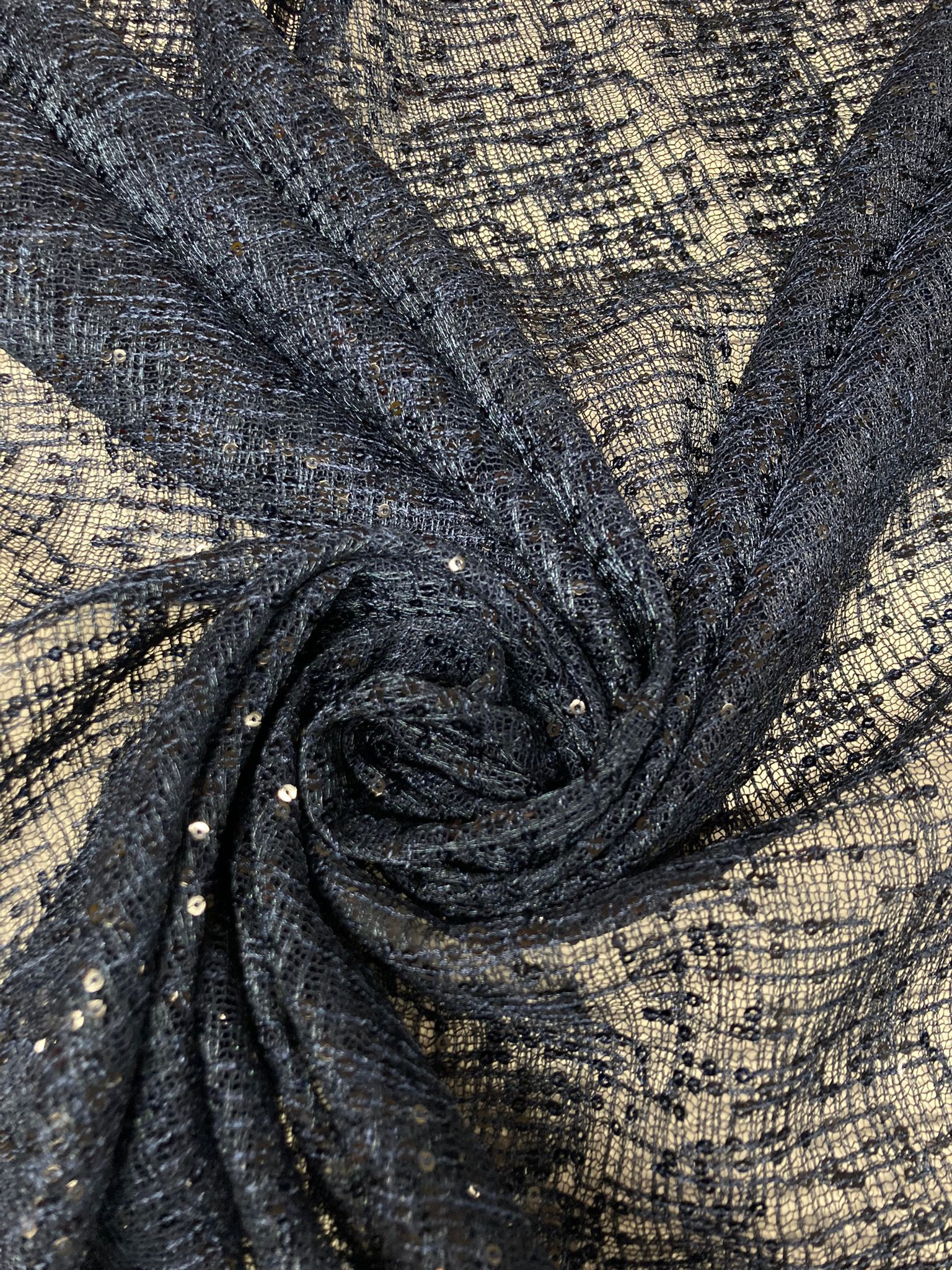 Lentejuela azul marino sobre tul azul marino
