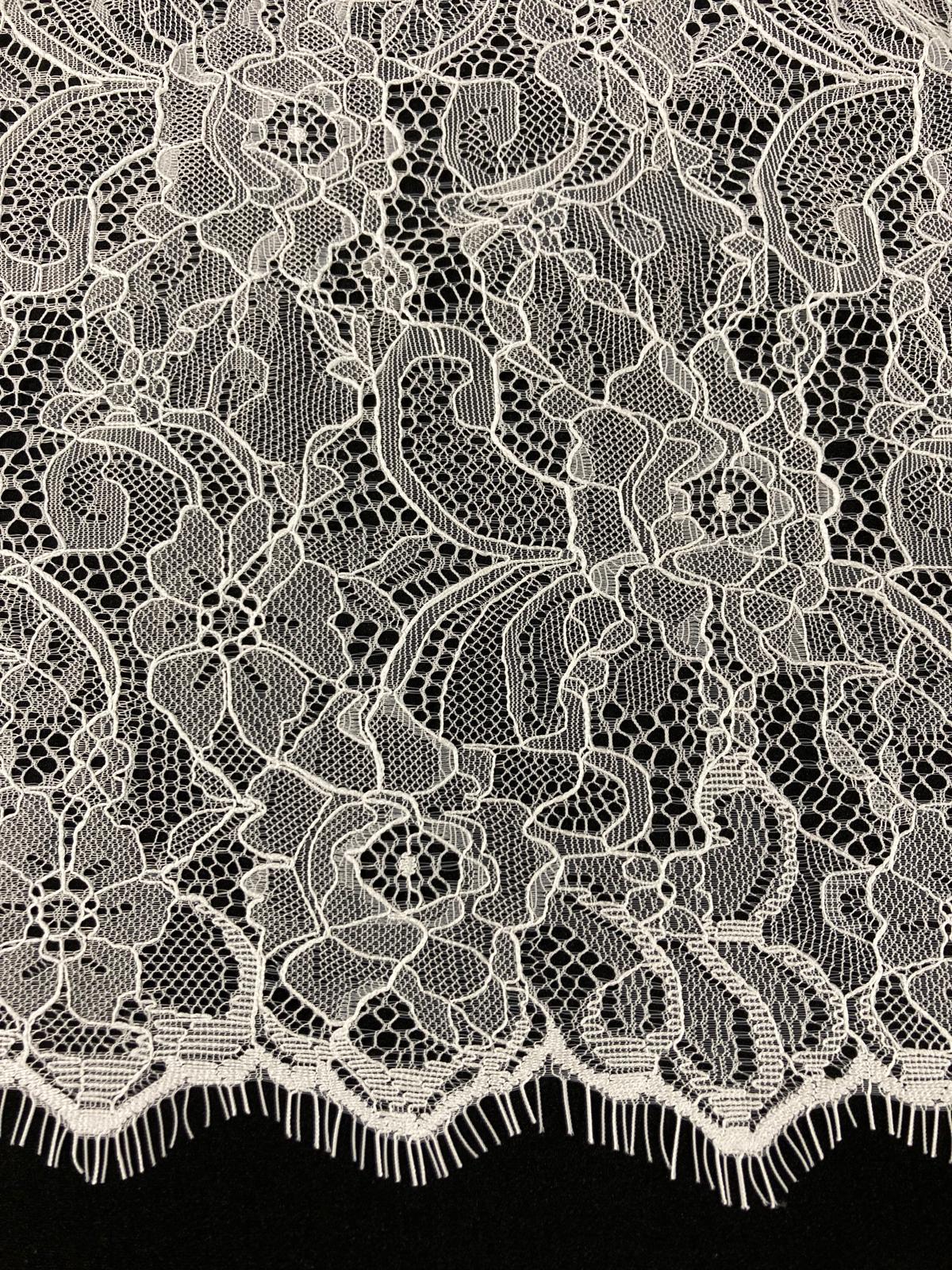 Esta mantilla tiene 3 metros de largo X 1.50 metros de ancho. Lleva puntilla en ambos lados a todo lo largo de los 3 mts.