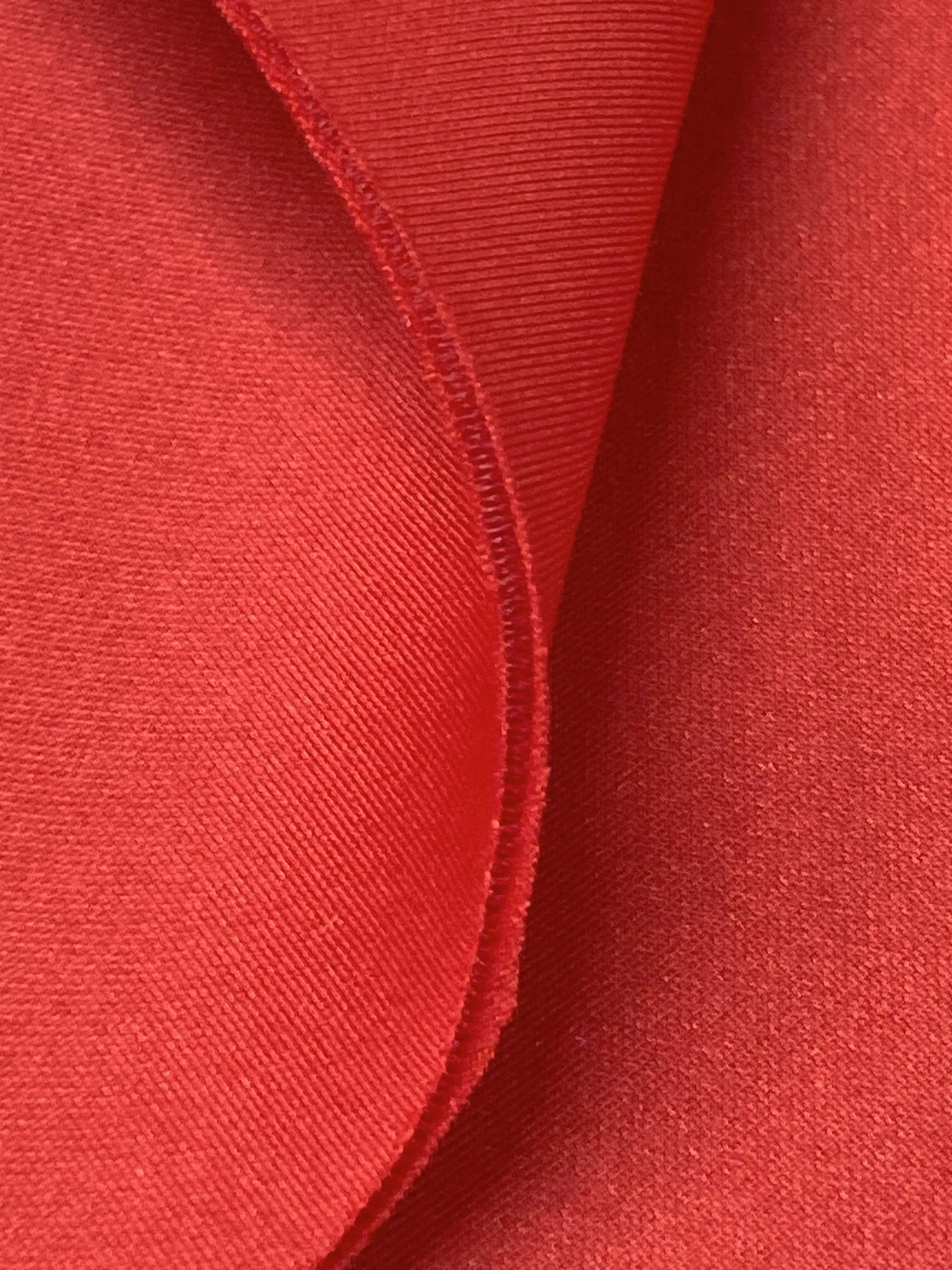Neopreno doble rojo es una tela de punto de neopreno de doble cara, se compone de dos telas de punto y en su interior lleva una fina capa de espuma.