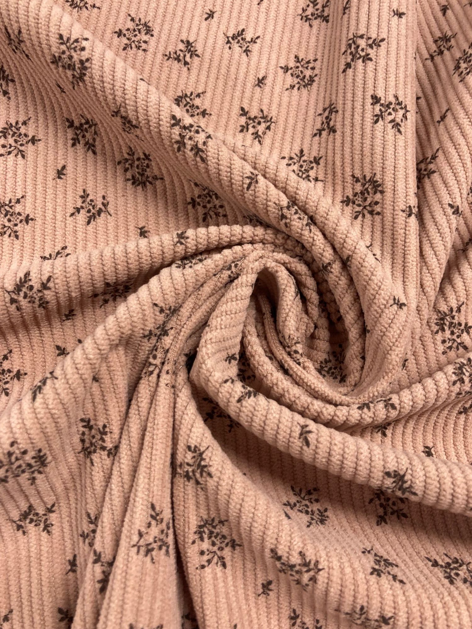 Esta pana es estampada con flores en tono maquillaje más oscuro.