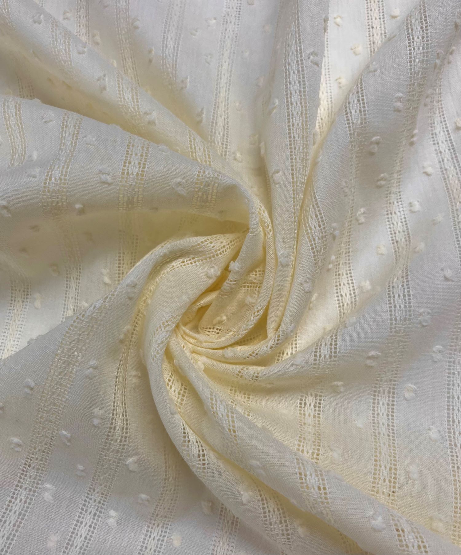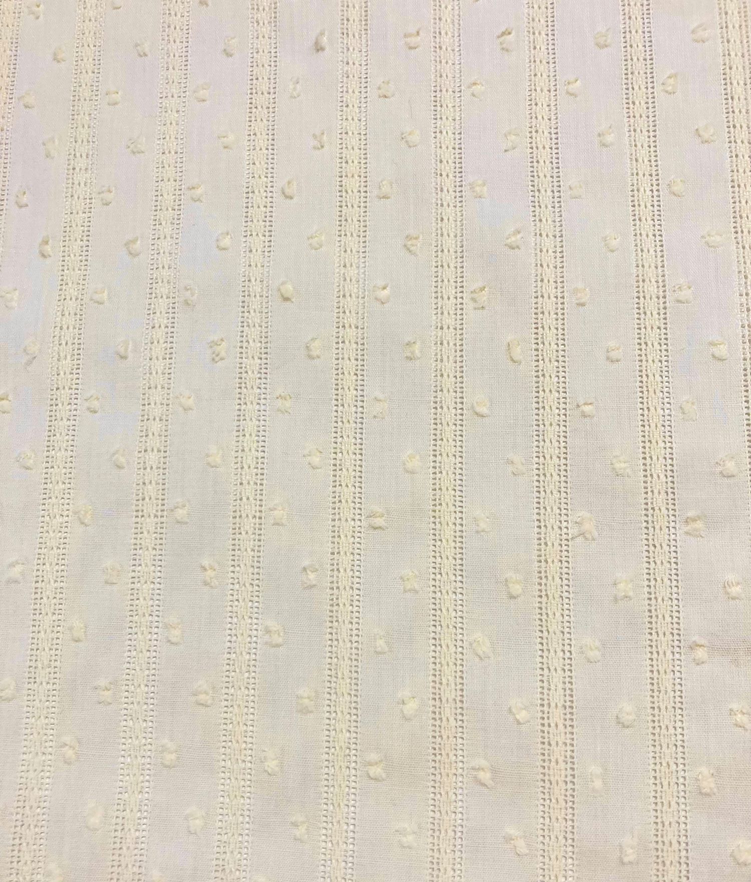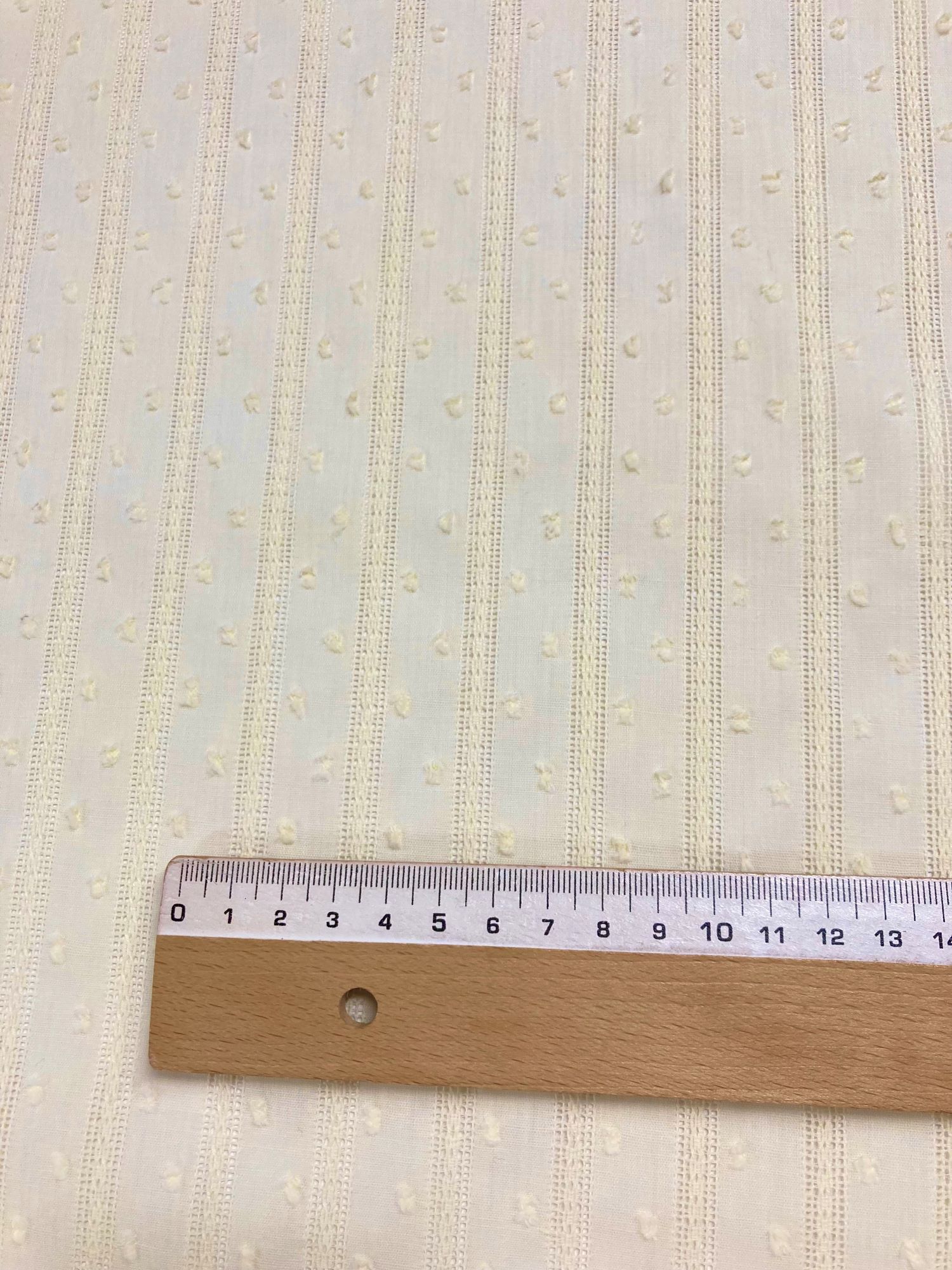 Plumeti vainica beige es 100% algodón, color beige tirando a amarillo mantequilla.