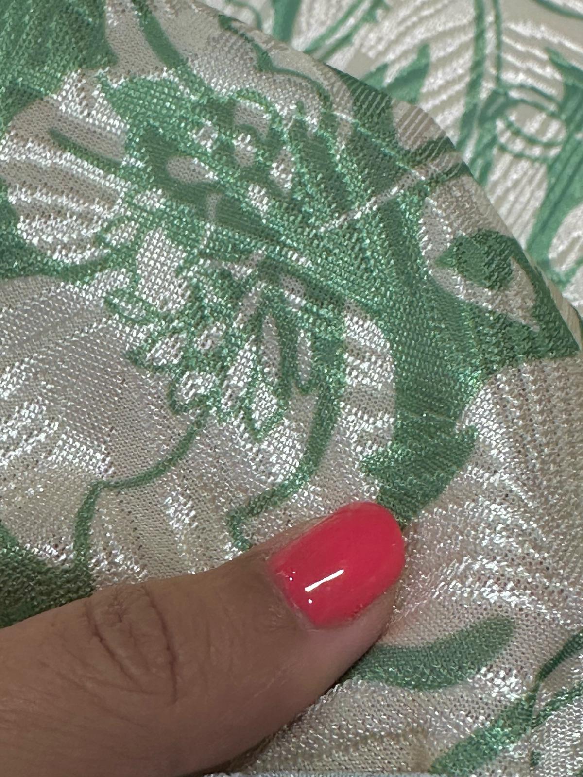 Descripción: esta tela, que casi en su totalidad es de poliéster, es un tejido muy elástico, que no se deforma con su uso y resiste perfectamente al uso y los lavados. Se trata de una tela con mucha caída.