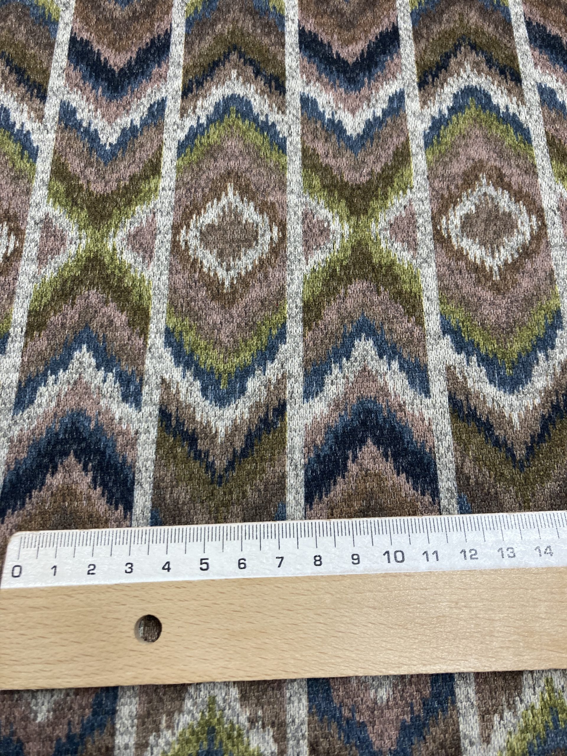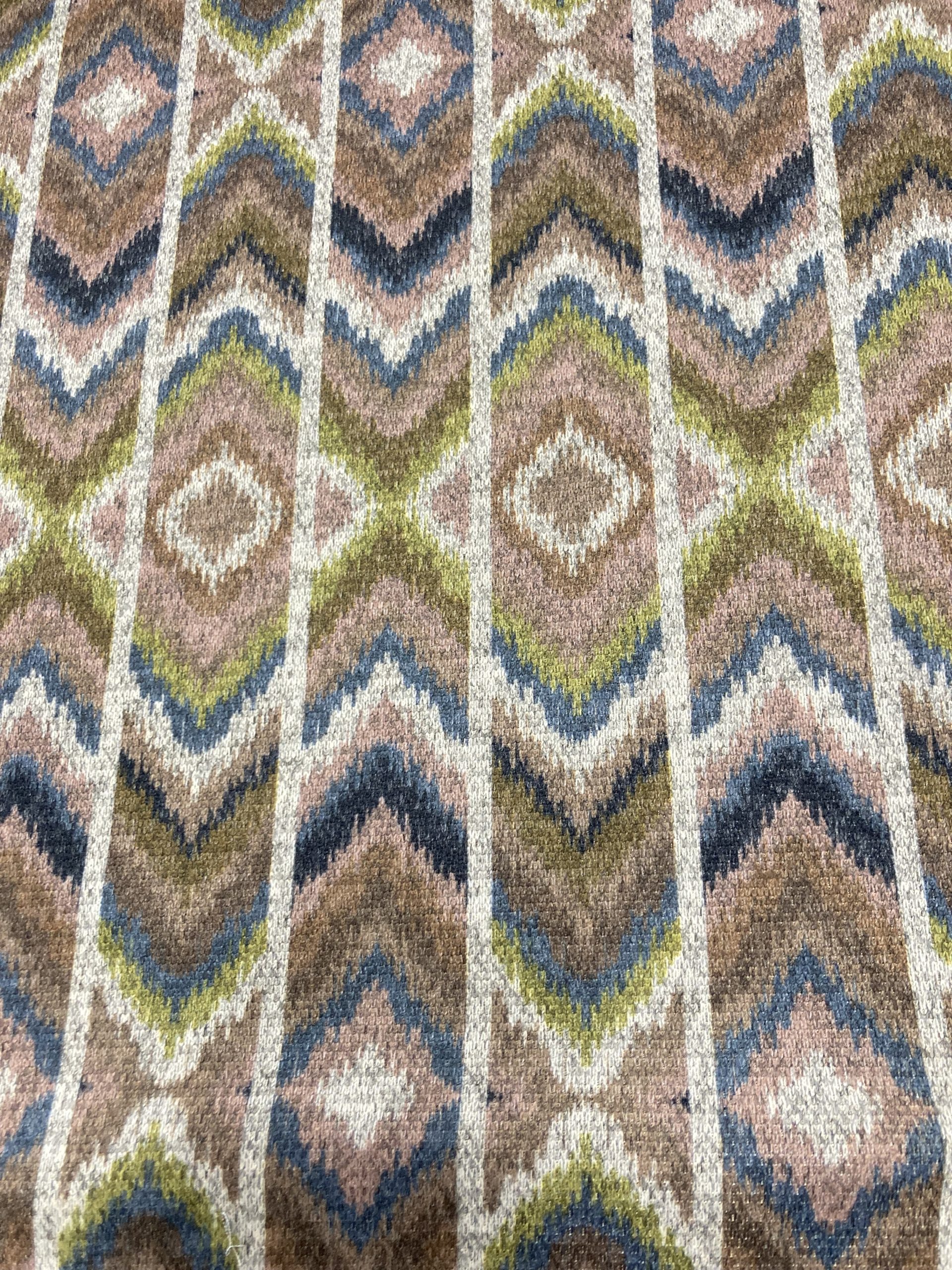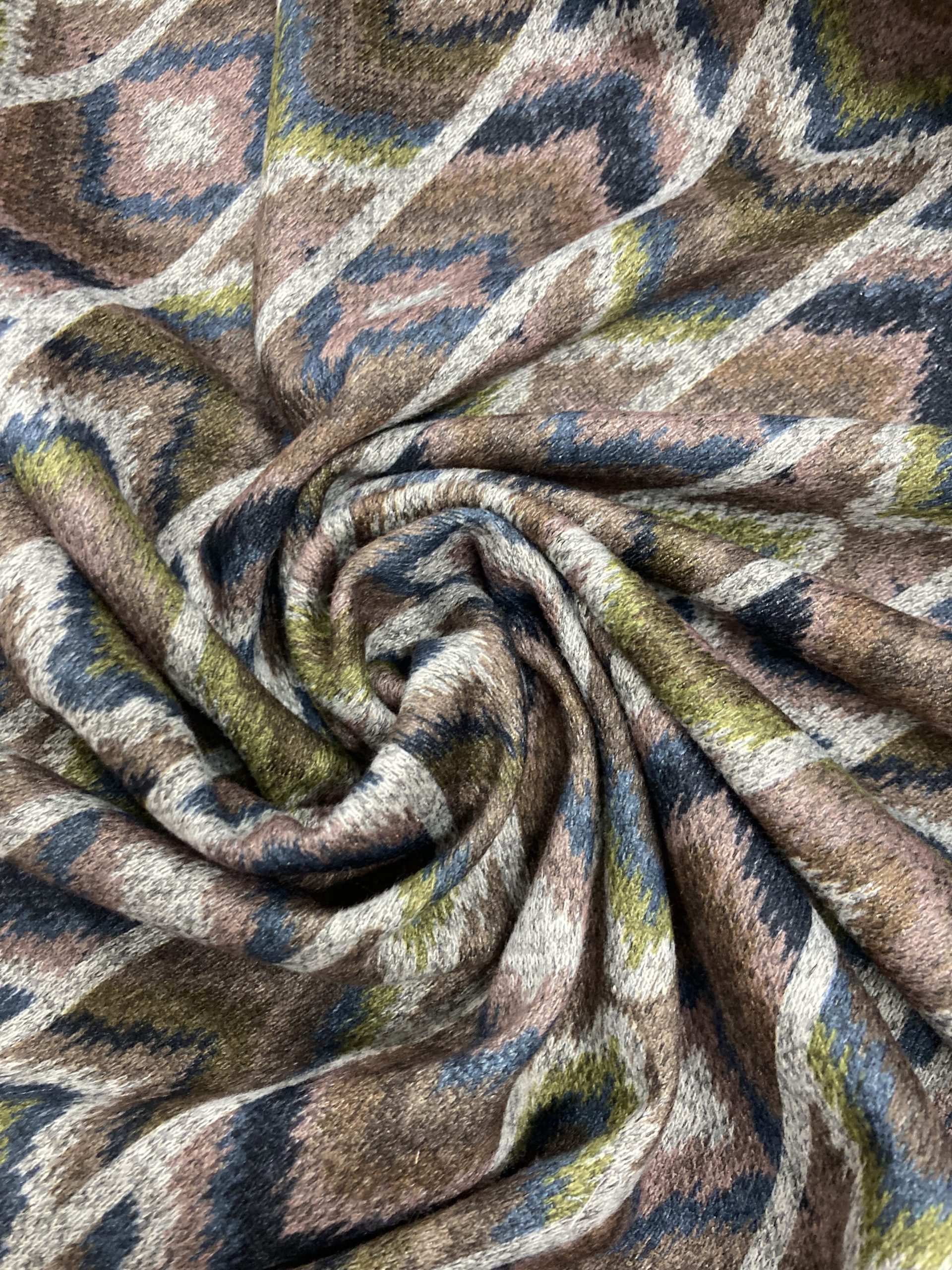 Punto estampado en tonos verde ,rosa y mostaza Tejido con muy suave, con caída y de textura muy suave y agradable al tacto. Tela ideal para la confección de ropa