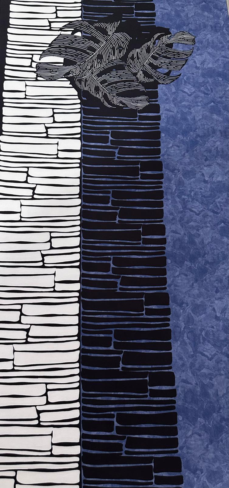 Colores: azul empolvado marmoleado, azul marino y blanco roto