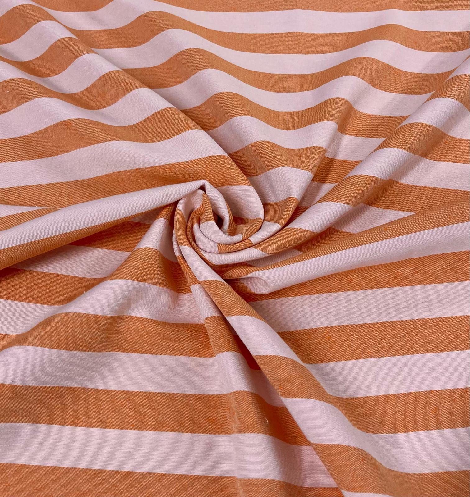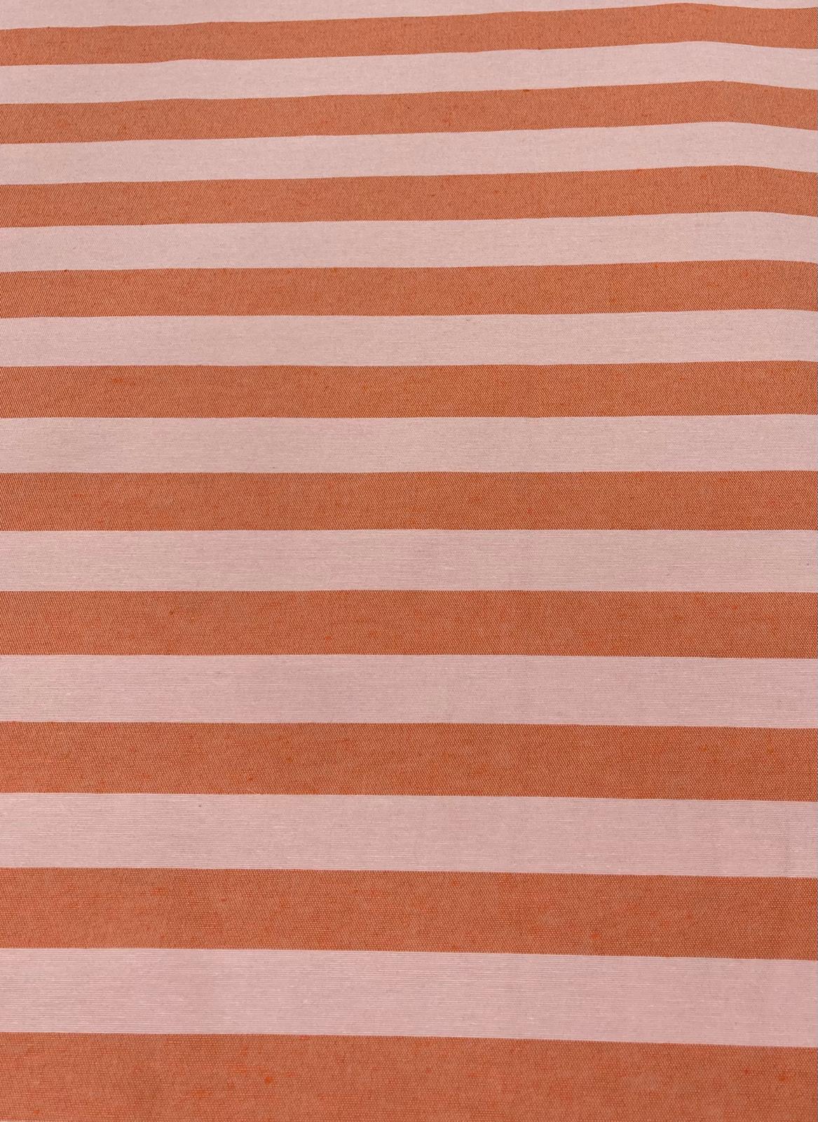 Esta tela de rayas, a pesar de ser tejidas, o sea, que no son estampadas, no tiene el mismo color por la otra cara, por el reverso se ve mas bien blanco satinado.
