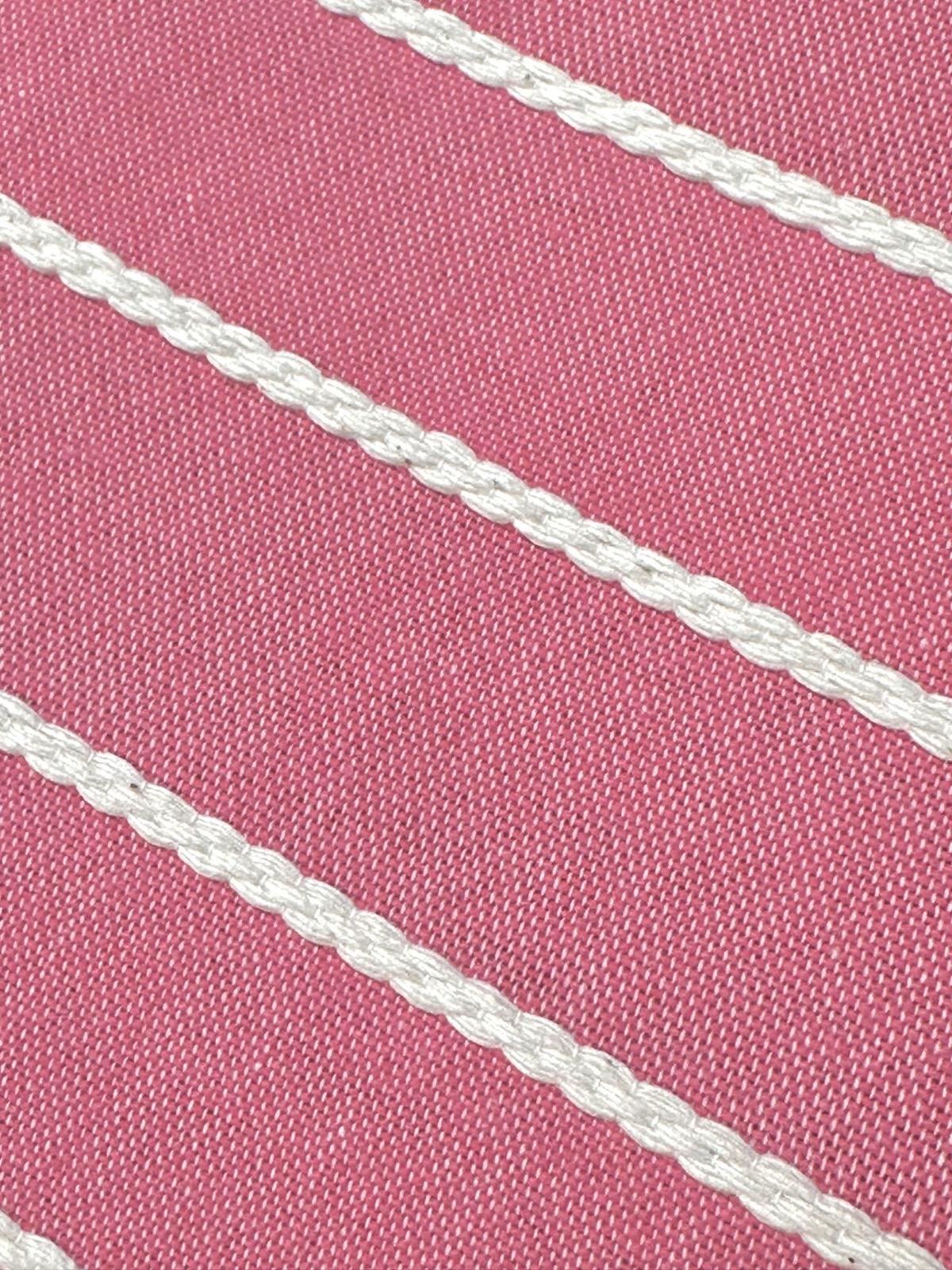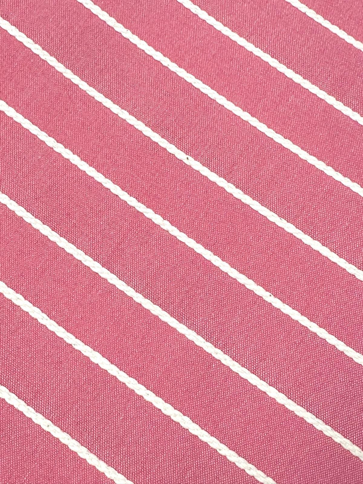Tela tipo loneta en color rosa con una raya trenzada en algodón crudo.