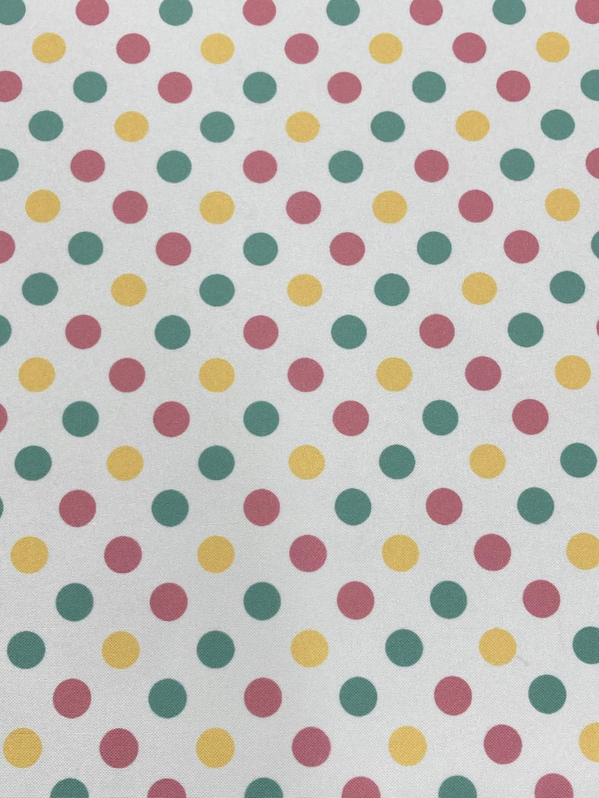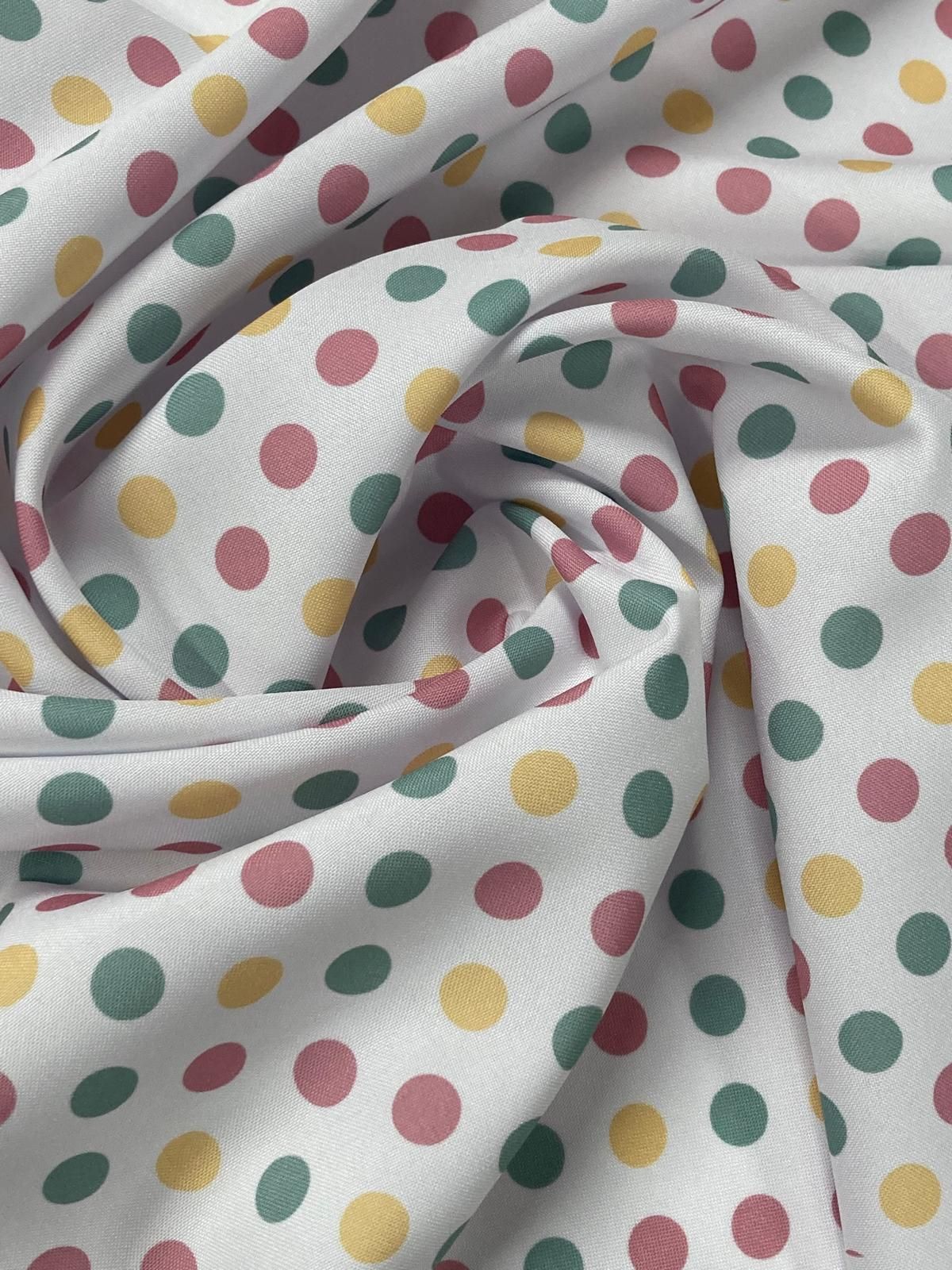 En este caso se trata de un strech blanco con lunares de color maquillaje, amarillo y verde antiguo.