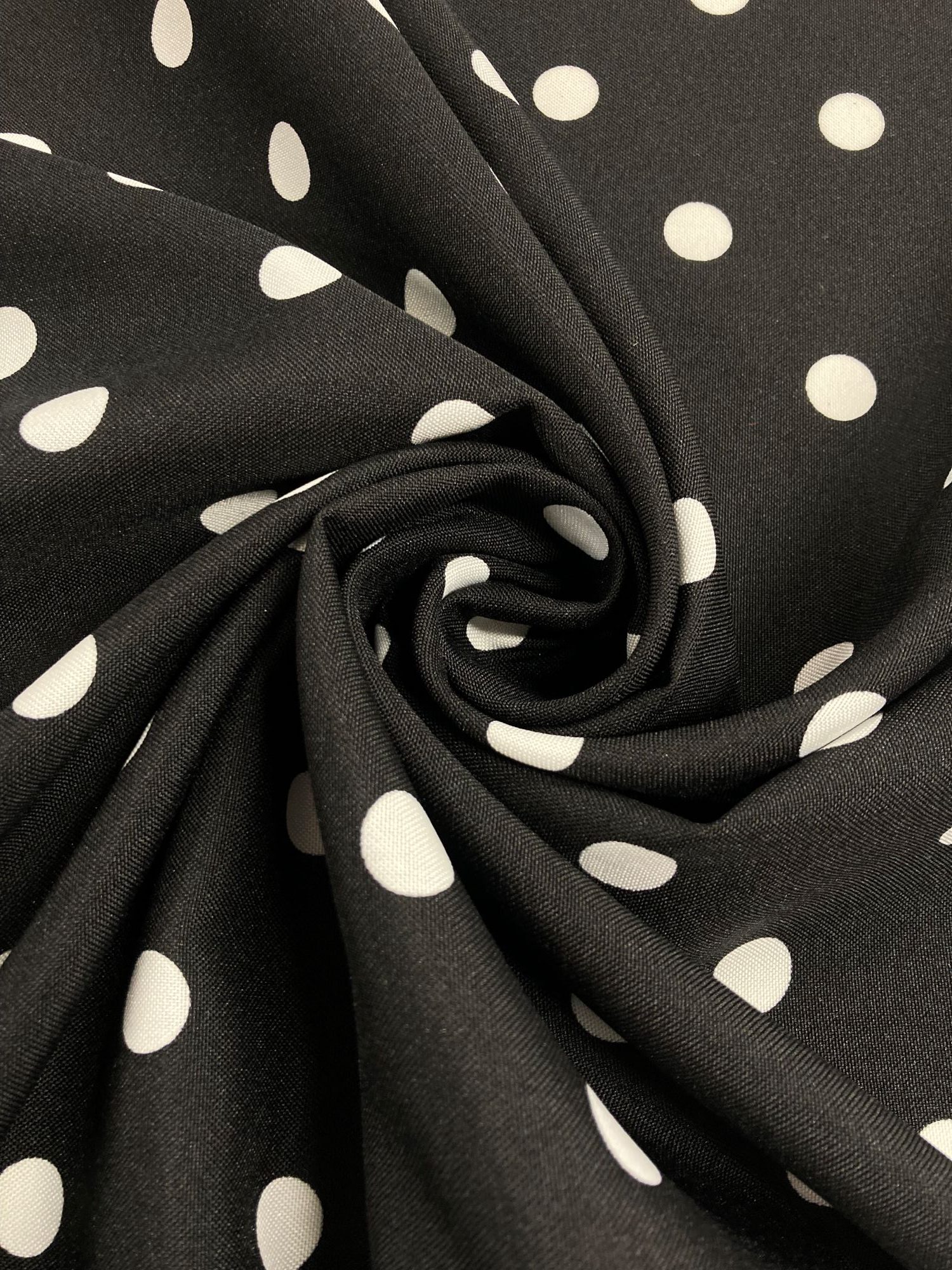En este caso se trata de un strech negra con lunares blancos de 15mm de diámetro.
