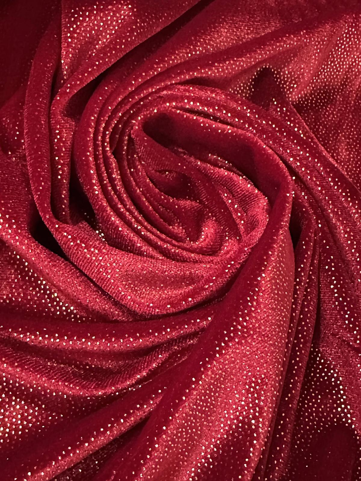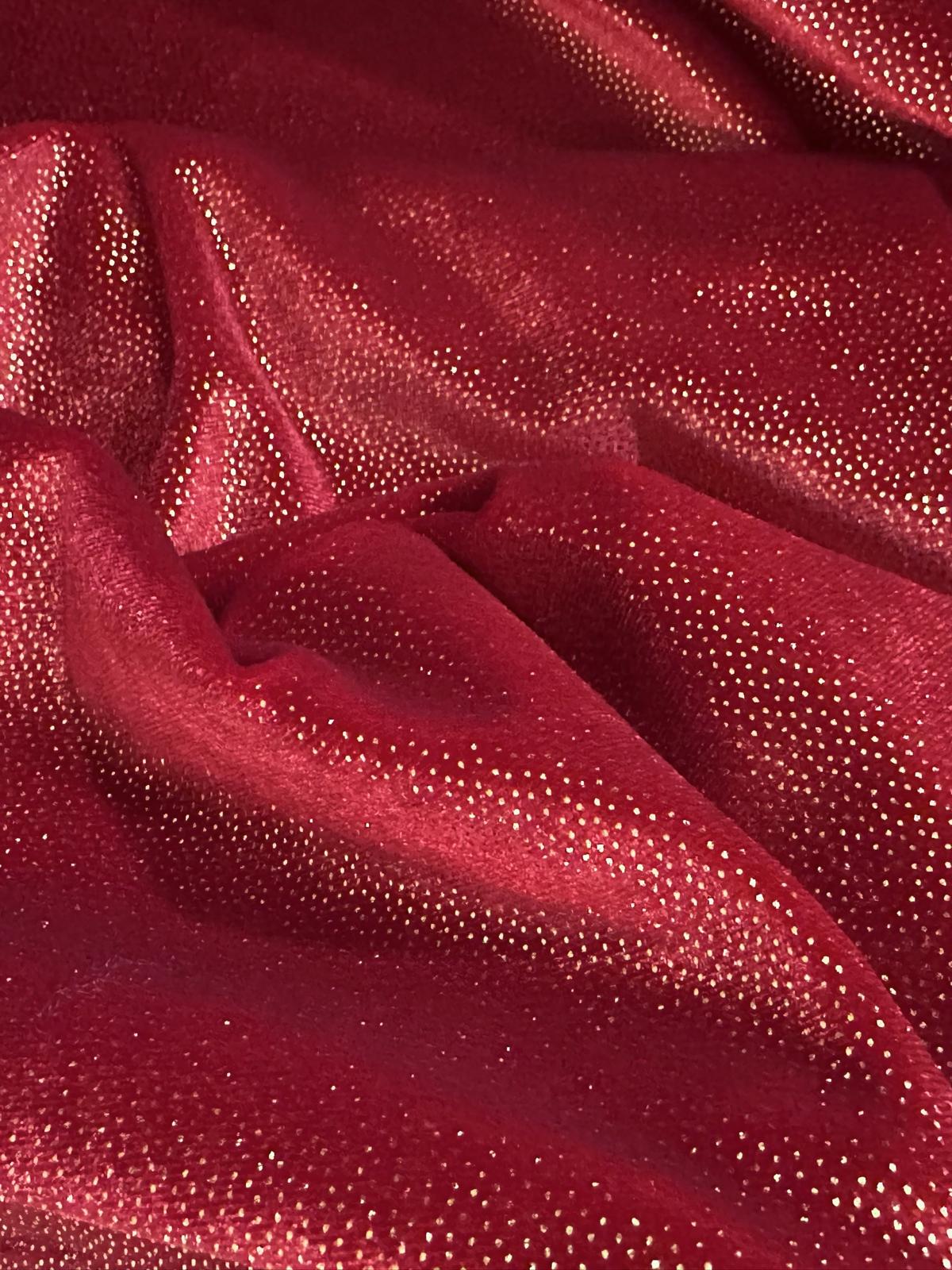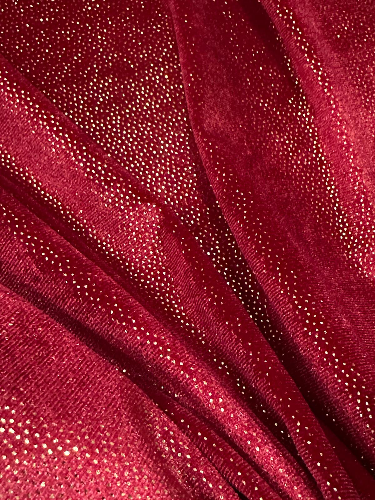 Este terciopelo se usa mucho para prendas de fiesta, ya que lleva el detalle de las pintitas en dorado.