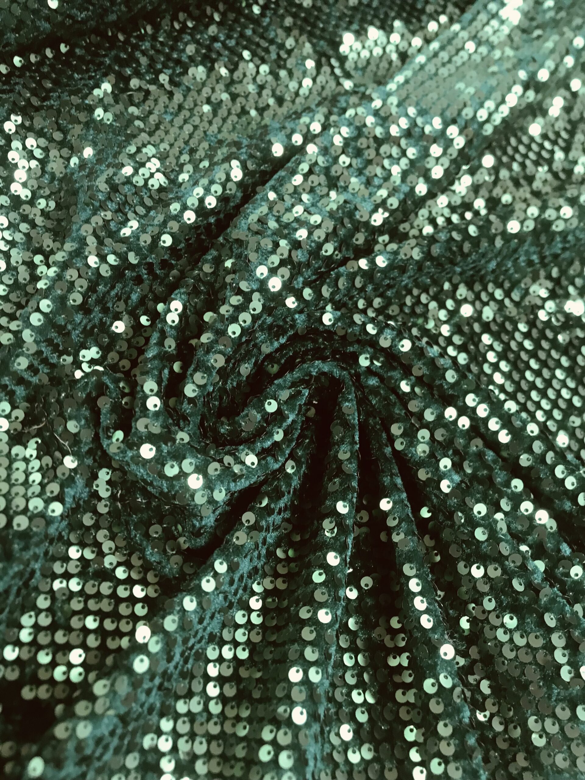Con este terciopelo elástico puedes para hacer tops, vestidos, kimonos, faldas y pantalones. La lentejuela va cosida.