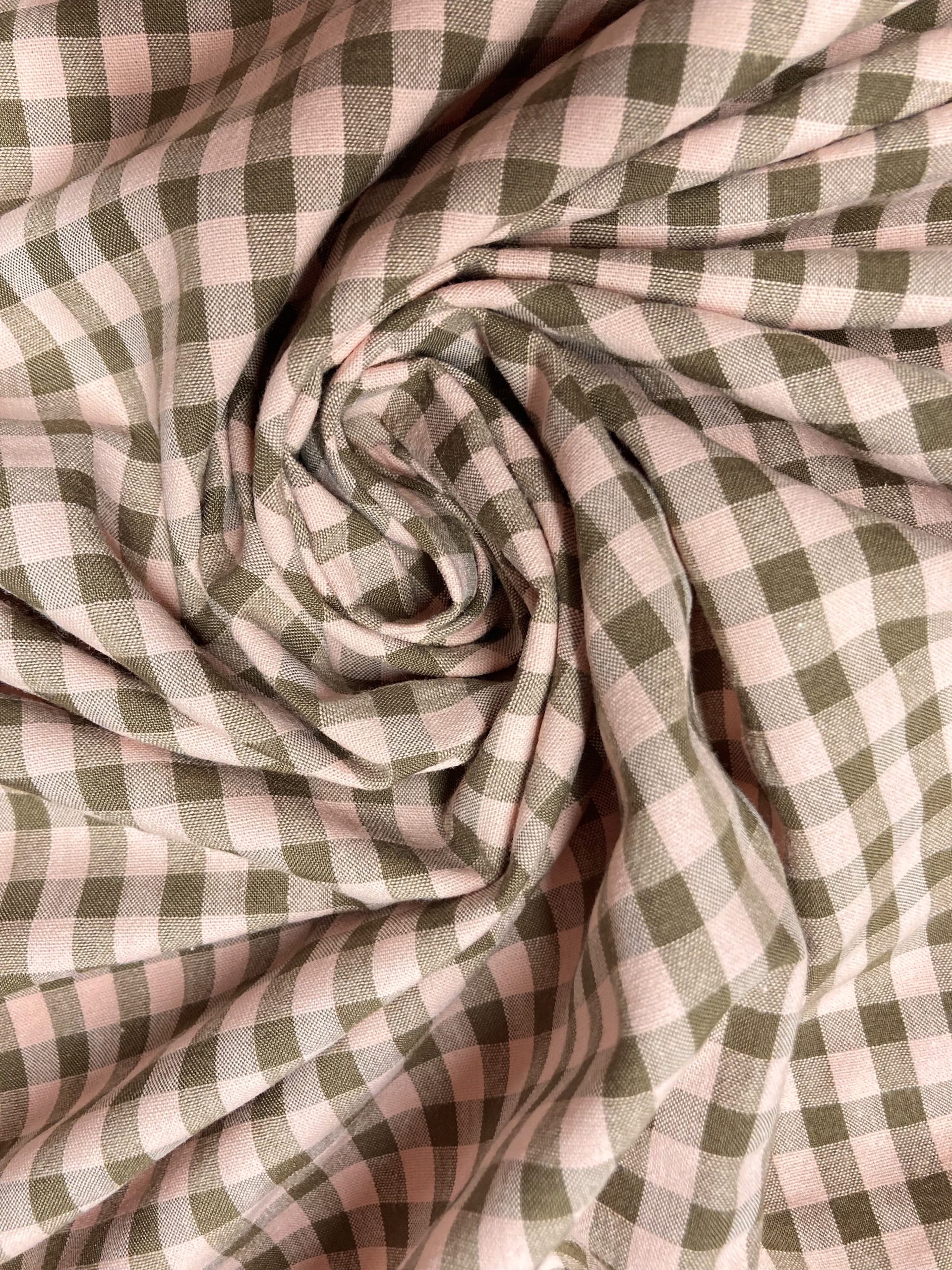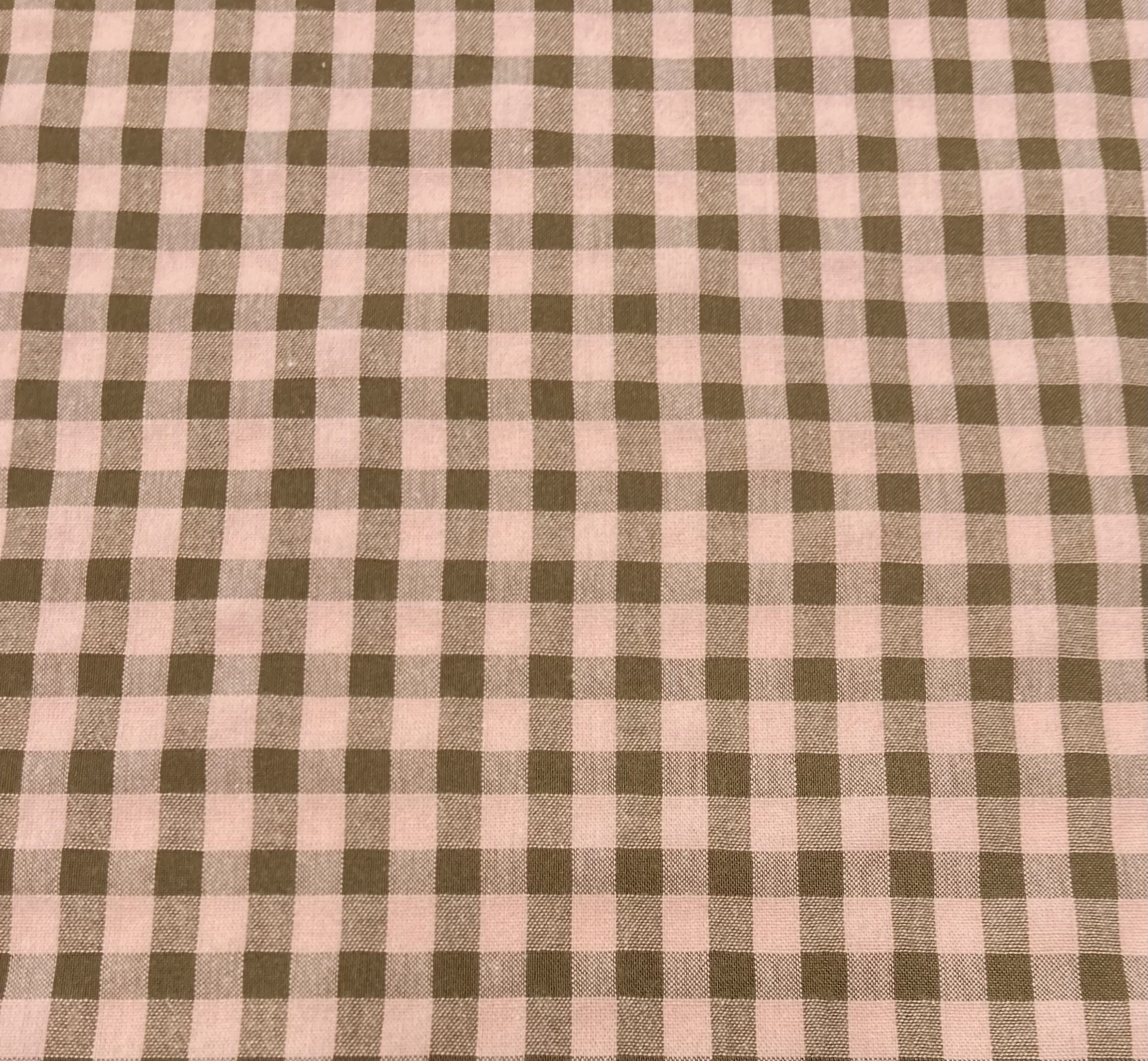 Cuadros de vichy seersucker color rosita y verde oliva oscuro