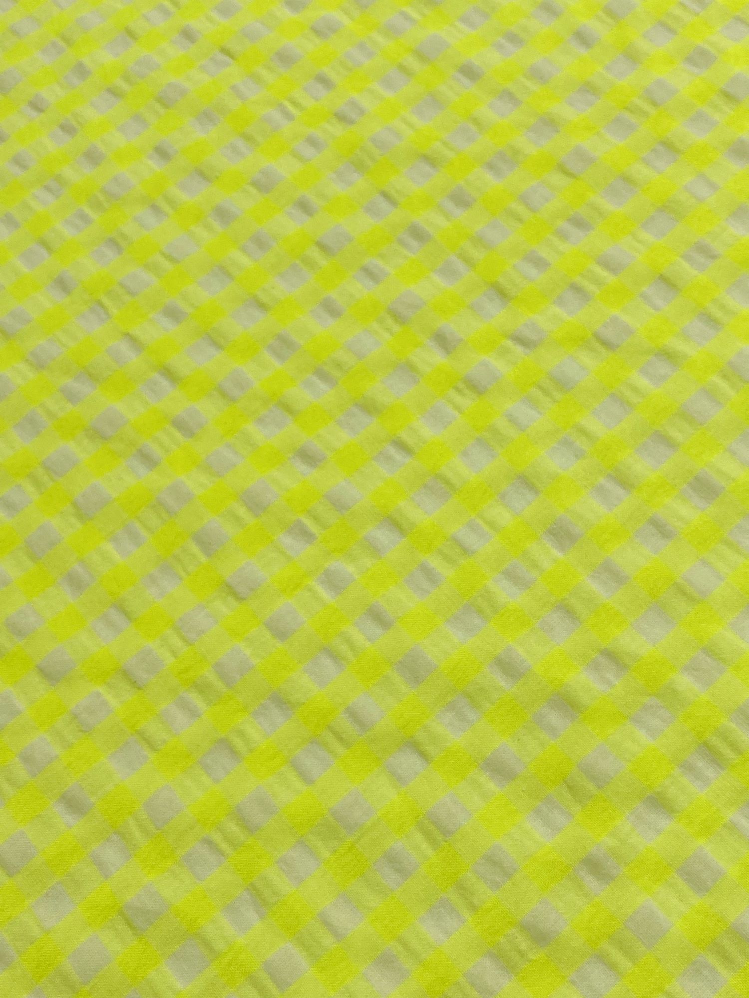Vichy seersucker ligero amarillo fluor mini es ideal para prendas de vestir así como para complementos, bolsos, neceseres, mochilas, fundas de todo tipo...