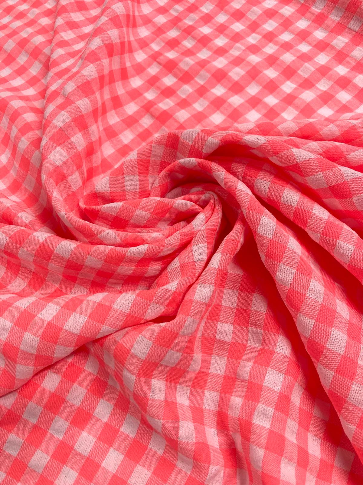 Vichy seersucker ligero azul/chicle mini es ideal para prendas de vestir así como para complementos, bolsos, neceseres, mochilas, fundas de todo tipo...