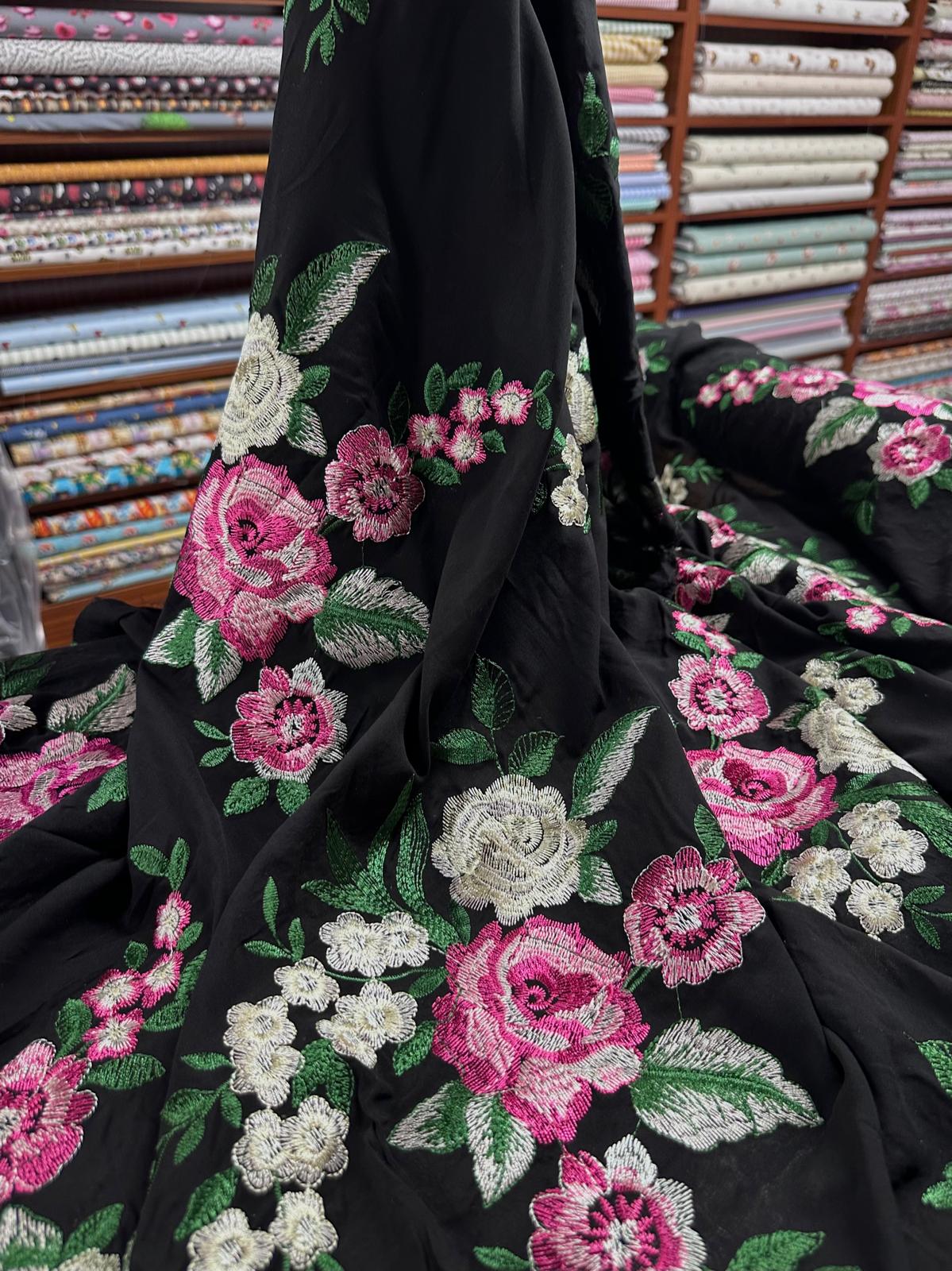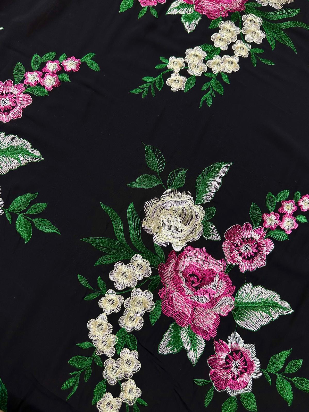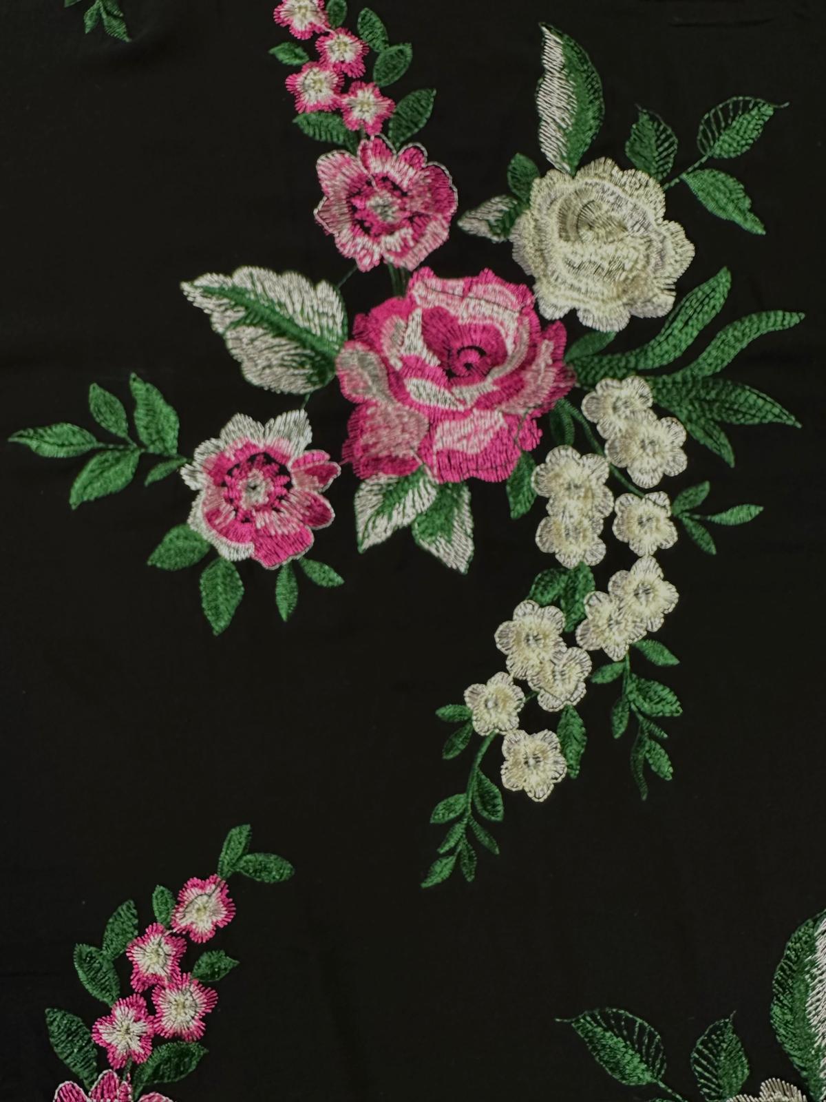 - Viscosa en color negro con bordado en verde, rosa y dorado clarito