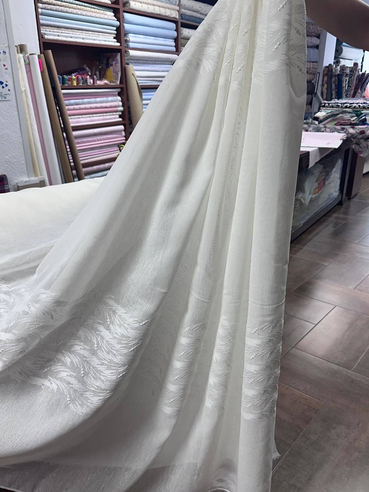 Visillo bordado Angélica beig es un visillo con peso y caída, además gracias al bajo plomo , que le aporta más peso, queda aún mas caído.