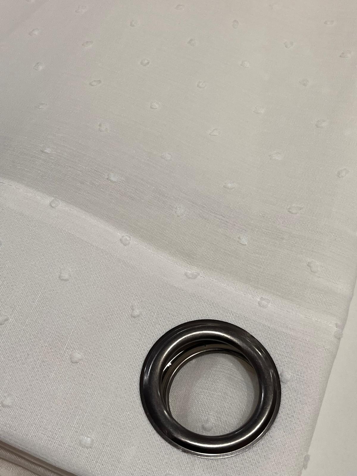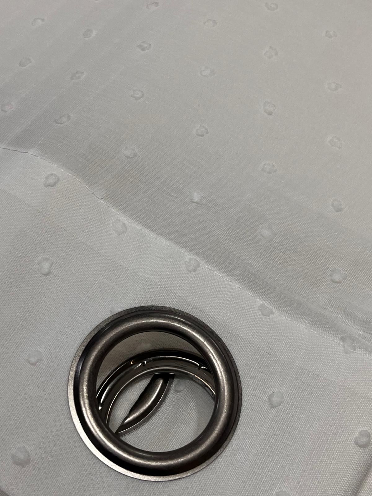 Este visillo va confeccionado con ollaos en color plata mate.