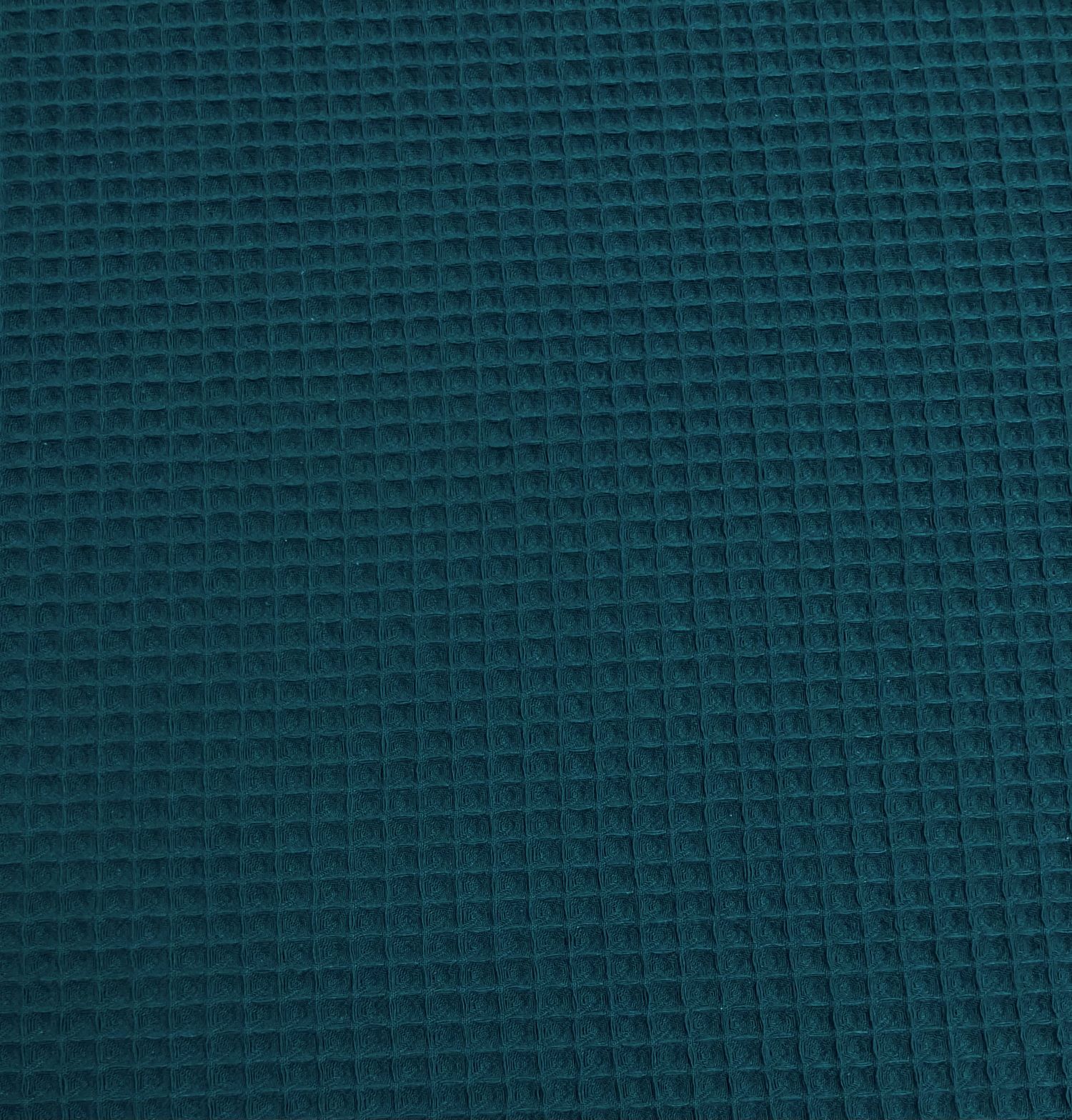 Este maravilloso piqué waffle o gofre llamado así por su estructura típica de nido de abeja cuadrado, proporciona una absorción muy alta, además de tratarse de un tejido sencillo de cuidar y resistente. Se trata de un tejido más bien sostenido, muy suave al tacto lo cual junto a su composición 100% algodón con certificación STANDARD 100 por OEKO-TEX® lo hace ideal para confección de ropa de bebe, productos de puericultura tales como toquillas o capas de baño, así como para cualquier proyecto de decoración de ropa y complementos del hogar, como colchas, cojines, toallas, albornoces, artículos de tocador, paños de cocina, etc…